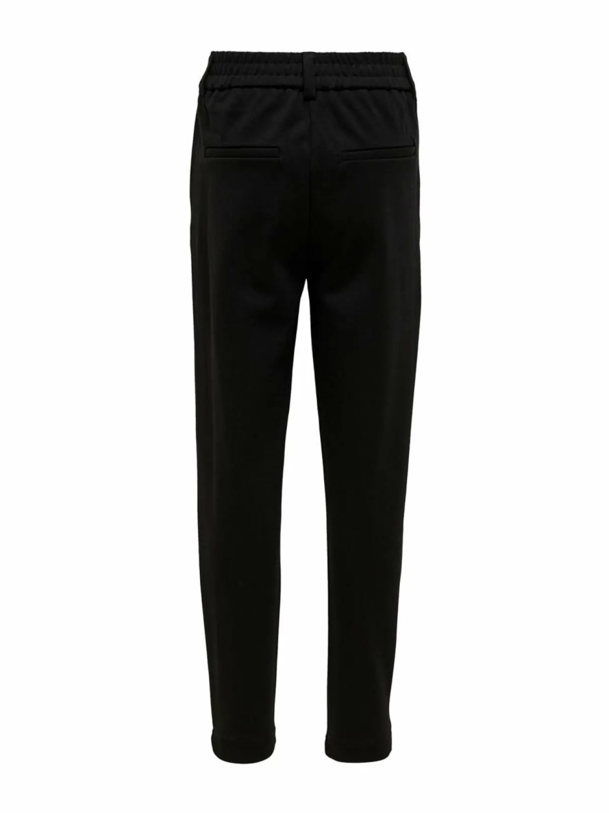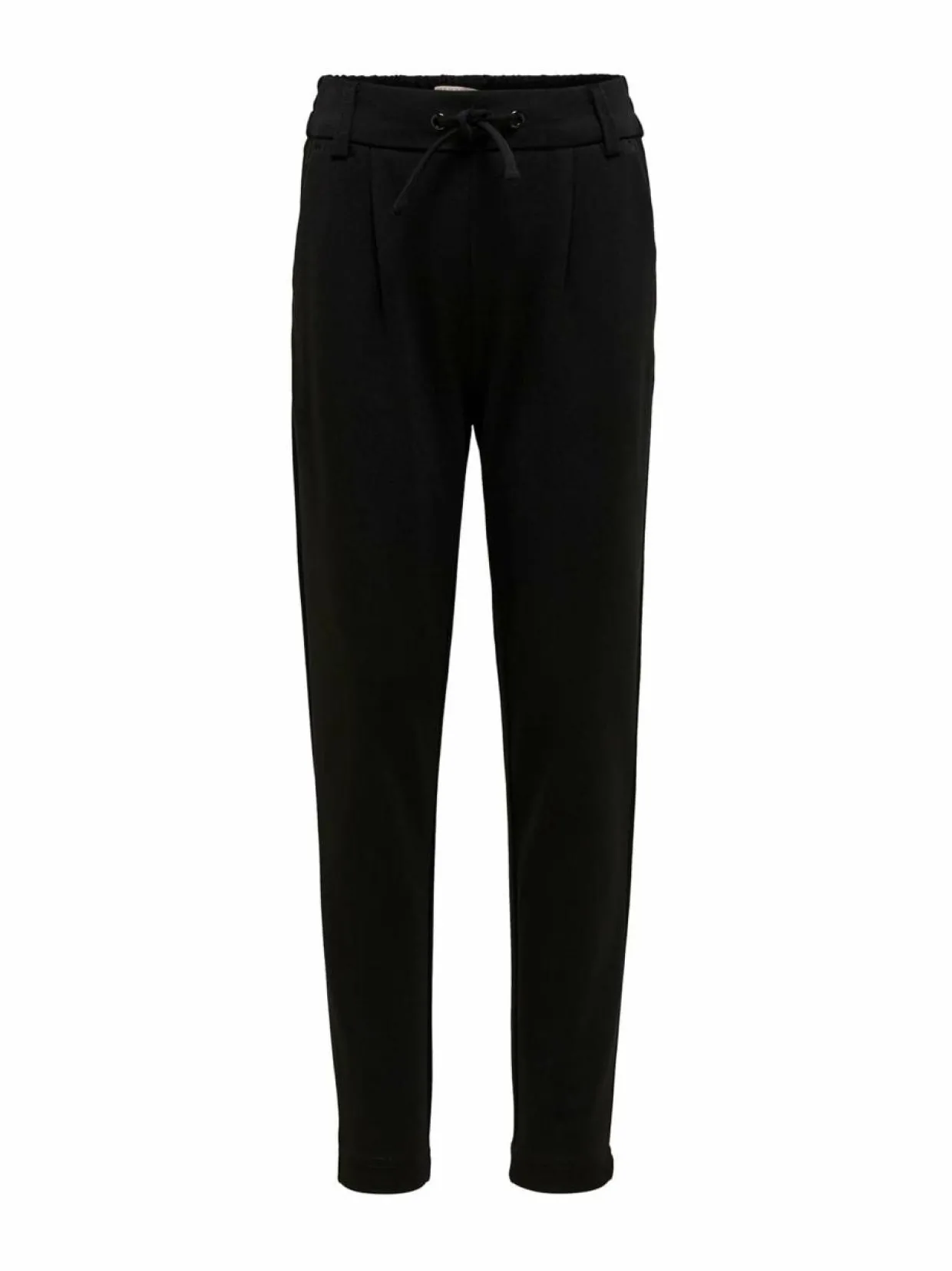 Kids Onlyn KonPoptrash-housut ovat mukavat, pukuhousumaiset housut arkeen kuin juhlaankin. Siistit housut on valmistettu joustavasta jerseymateriaalista. Vyötäröllä on säätönauhat ja lisäksi sisäpuolella napeilla säädettävä kuminauha. Sivuilla ja takana on taskut.