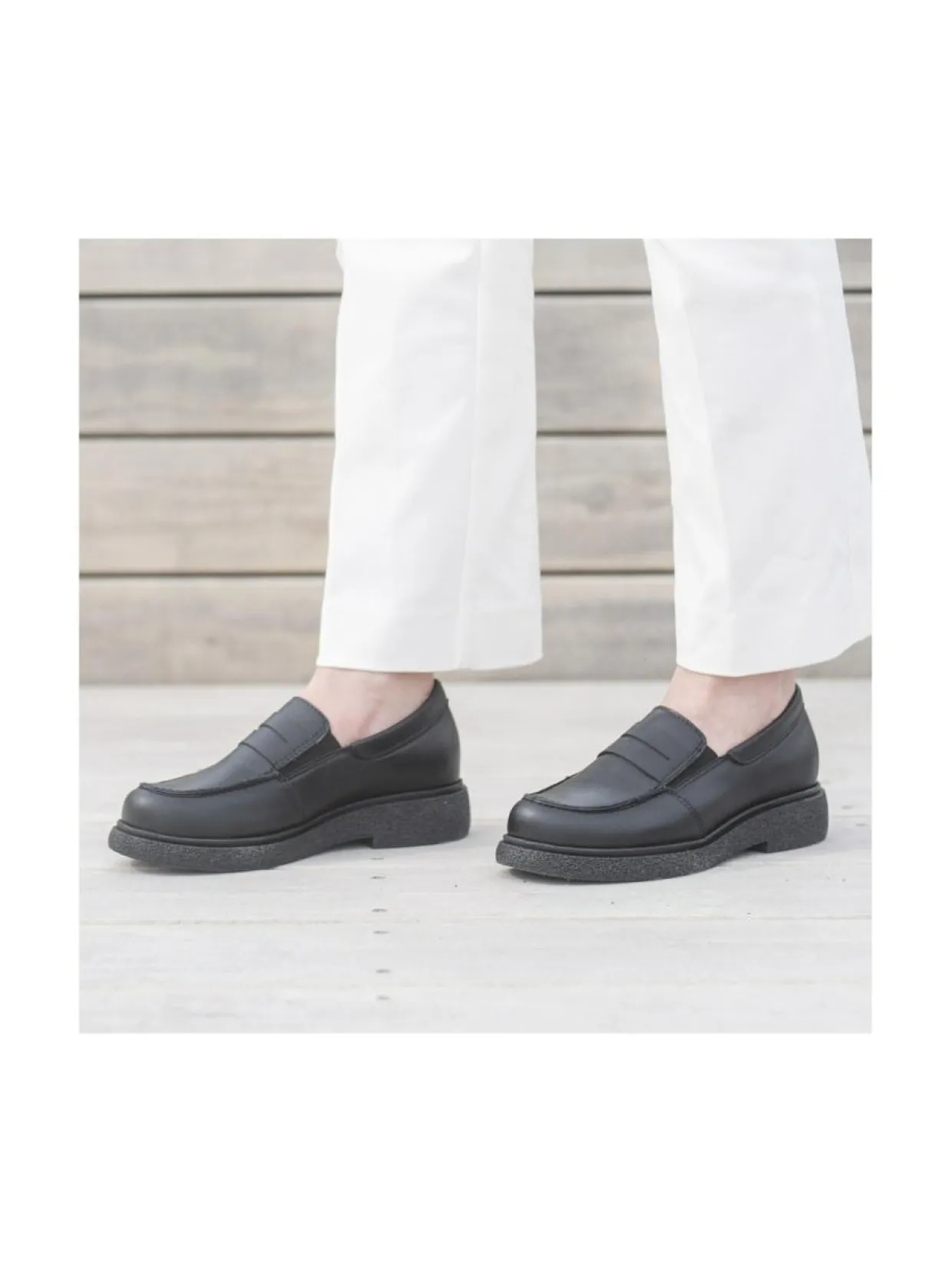 Ajattomat KREPPI loaferit sopivat niin toimistolle kuin kaupungillekin. Musta nappanahkapäällinen yhdistettynä paksuun pohjaan luo modernin tyylikkään vaikutelman. Sivuilla olevat venykkeet tekevät pukemisesta vaivatonta sekä lisäävät käyttömukavuutta.