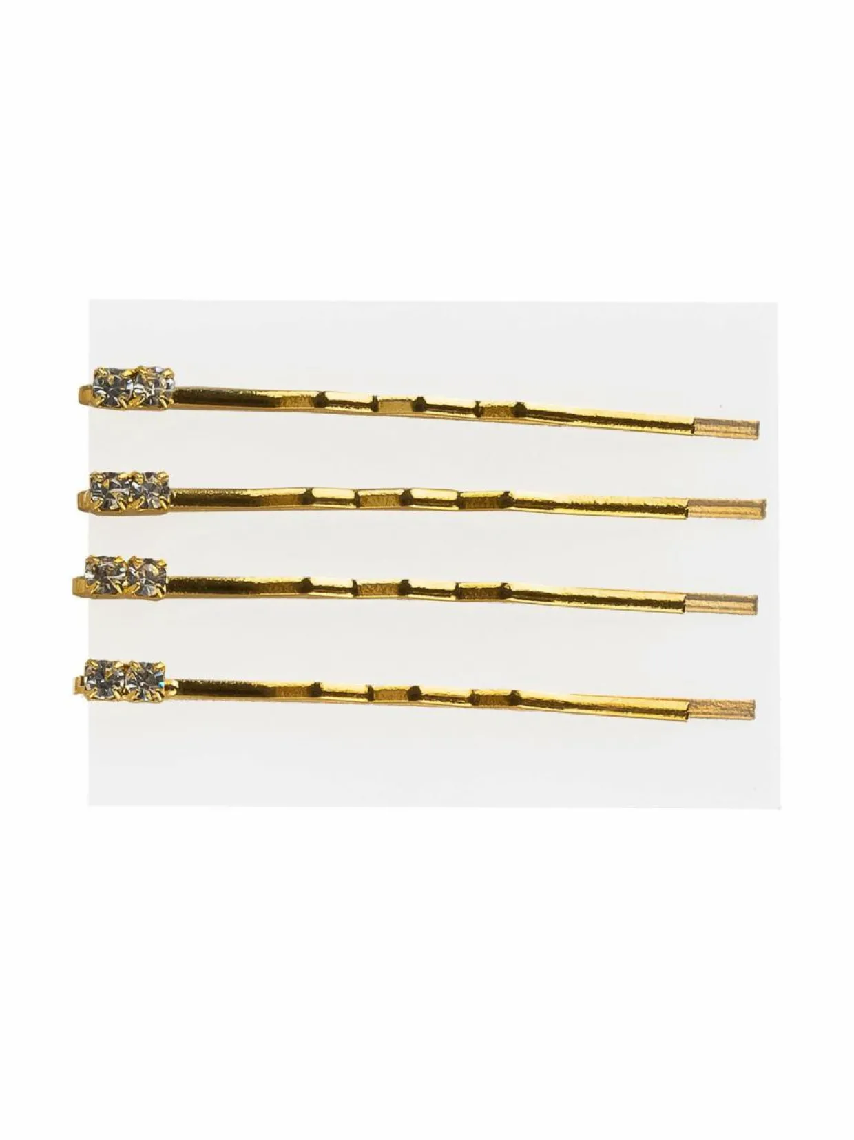 Duroyn hiuspinneissä on sievät strassikoristeet. Pakkauksessa on neljä pinniä.
