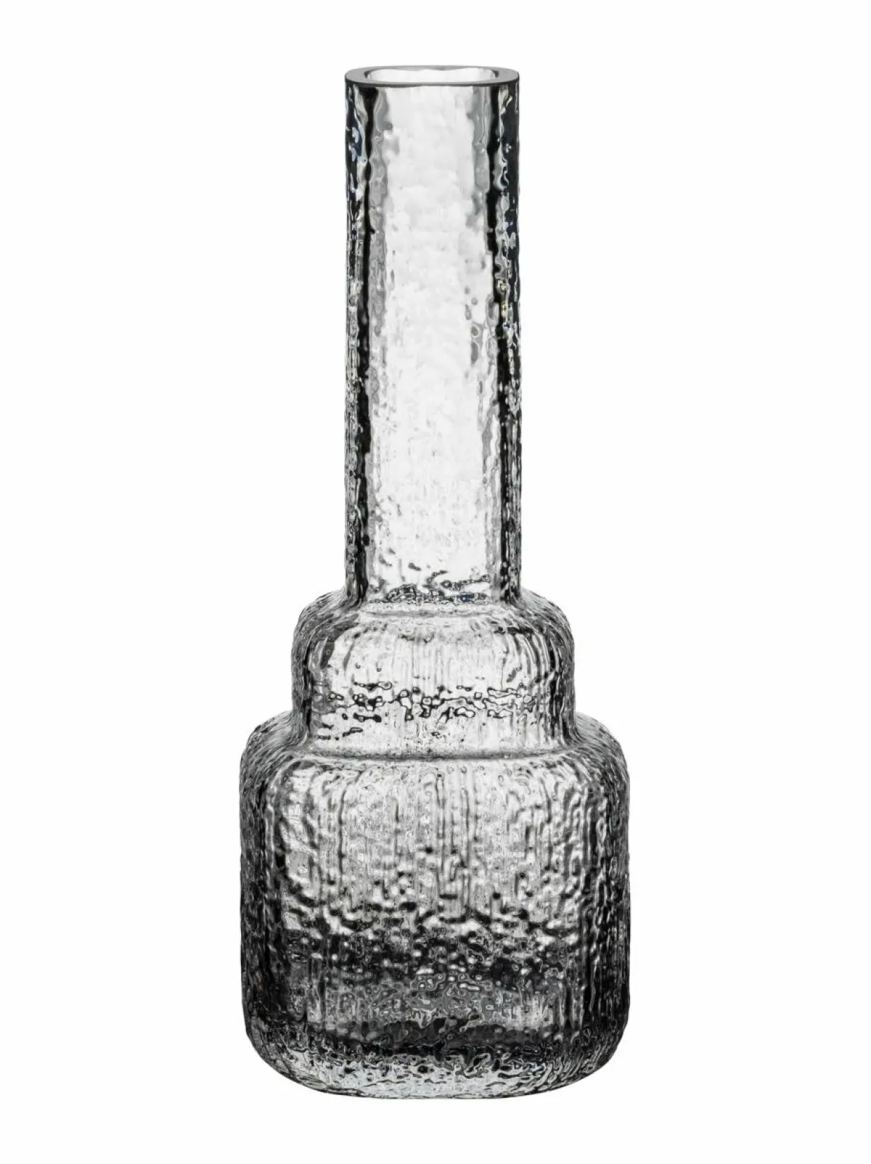 Kuulea-lasimaljakko on kaunis katsoa sellaisenaankin, mutta edukseen suosikkikukkiesi kanssa. Kuulea-sarjan tuotteita yhdistää pinnan kuviointi, joka on saanut inspiraationsa sateen ropinasta ikkunaan. Suunnittelija Tuuli Saarelainen. Maljakko suupuhallettua lasia, joten siinä voi näkyä käsityön jälkiä ja olla ilmakuplia.