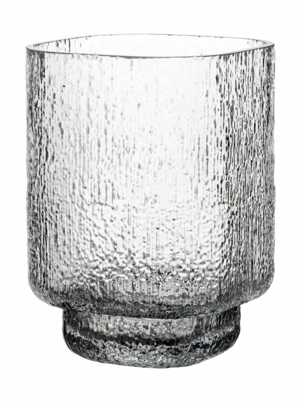 Kuulea-lasimaljakko on kaunis katsoa sellaisenaankin, mutta edukseen suosikkikukkiesi kanssa. Kuulea-sarjan tuotteita yhdistää pinnan kuviointi, joka on saanut inspiraationsa sateen ropinasta ikkunaan. Suunnittelija Tuuli Saarelainen. Maljakko suupuhallettua lasia, joten siinä voi näkyä käsityön jälkiä ja olla ilmakuplia.