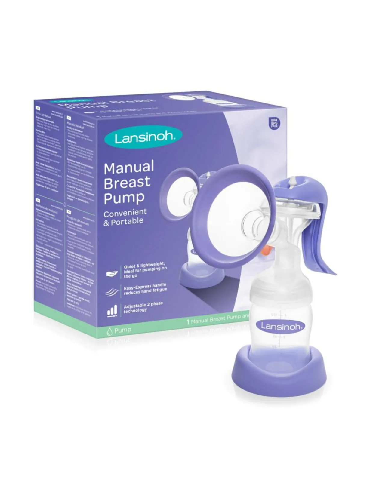 Lansinoh rintapumppu käsikäyttöinen Manual Breast Pump sopii satunnaiseen pumppaukseen ja matkalle mukaan. Lansinoh käsikäyttöisessä rintapumpussa on kaksivaiheinen teknologia, joka mahdollistaa vaihdon stimuloinnin ja pumppauksen välillä. Tämä saa aikaan entistä tehokkaamman pumppauksen. Käsikäyttöisessä Lansinoh rintapumpussa on ergonominen Easy-Express-kahva, joka vähentää käden väsymistä. Rintapumppu on helppokäyttöinen ja se saadaan puhdistettua vaivattomasti.