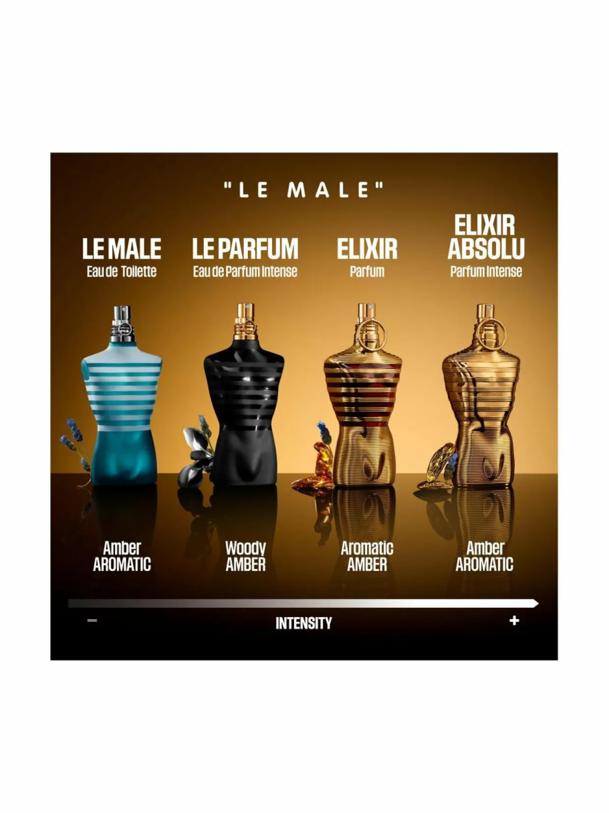 Sukella kultaisen kuumiin aaltoihin Jean Paul Gaultier Le Male Elixir Absolu Eau de Parfum -tuoksun kanssa. Tämä kuumaakin kuumempi seilori kunnioittaa ikonista Le Male Eau de Toilette -tuoksua ulkomuodollaan ja on intensiivisempi verisio jo klassikoksi muodostuneesta Le Male Elixir Eau de Parfum -tuoksusta. Tuoksunuotteina on luumua, laventelia sekä tonkapapua. Tuoksun intensiivisyys addiktoi eikä jätä ketään kylmäksi.