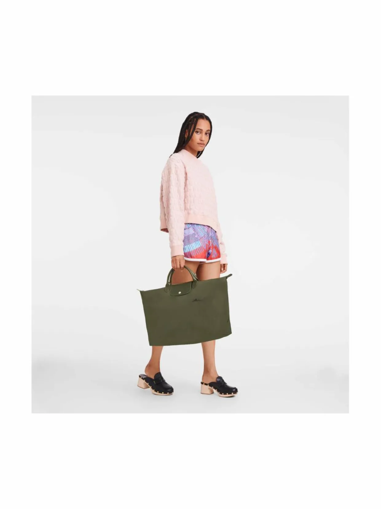 Le Pliage Green -malliston tuotteet ovat valmistettu kierrätetyistä materiaaleista, jotka on sisäpuolelta pinnoitettuja. Tämä kevyt matkakassi on kokoontaitettava ja se suljetaan sekä vetoketjulla että nahkaisella läpällä. Sisältä löytyy yksi avotasku. Ekologinen ja kestävä valinta niin matkoille, harrastuksiin kuin päivittäiseen käyttöönkin.