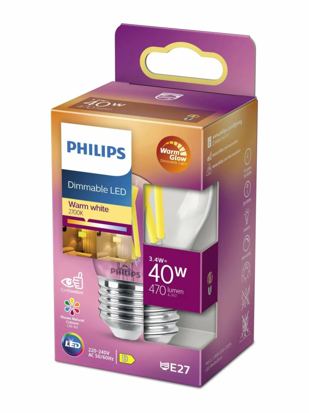 Philipsin kirkkaat LED-kynttilät tarjoavat kauniin säihkyvän valon ja poikkeuksellisen pitkän käyttöiän. Lamppu on kaunis niin päällä kuin pois päältäkin ja sopii erinomaisesti kattokruunuihin, joissa on pieni (E14) lampunkanta.