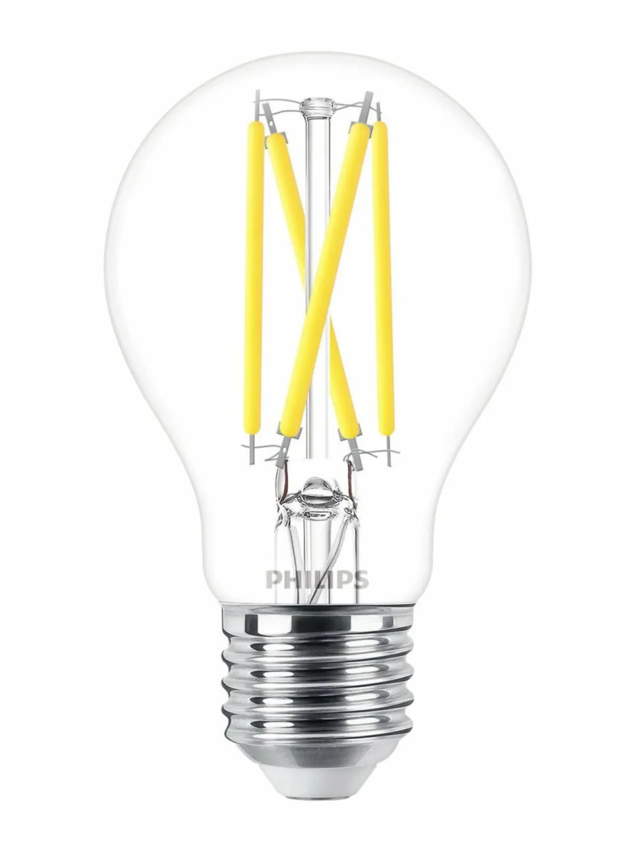 Philips LED -lamput tarjoavat kauniin ja lämpimän valkoisen valon, poikkeuksellisen pitkän käyttöiän sekä välittömän ja merkittävän energiansäästön. Puhtaasti ja tyylikkäästi muotoiltu lamppu korvaa täydellisesti perinteiset huurretut lamput.