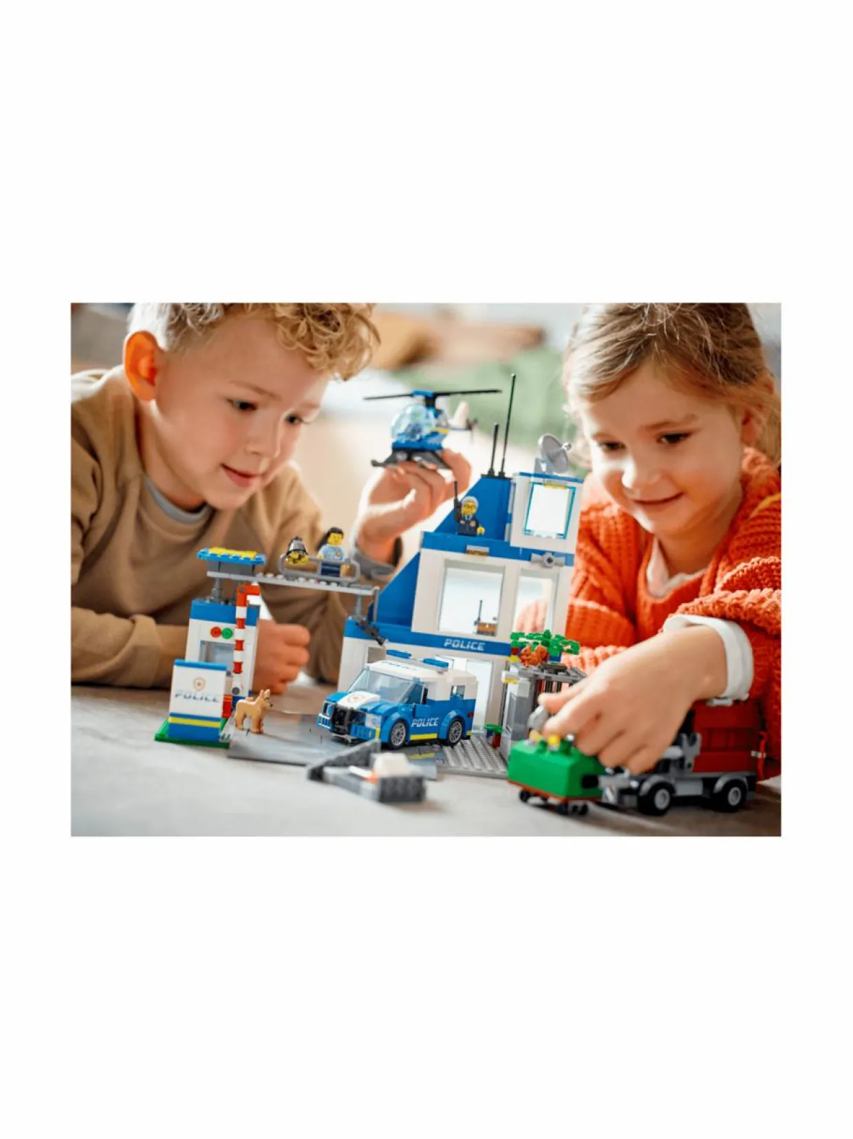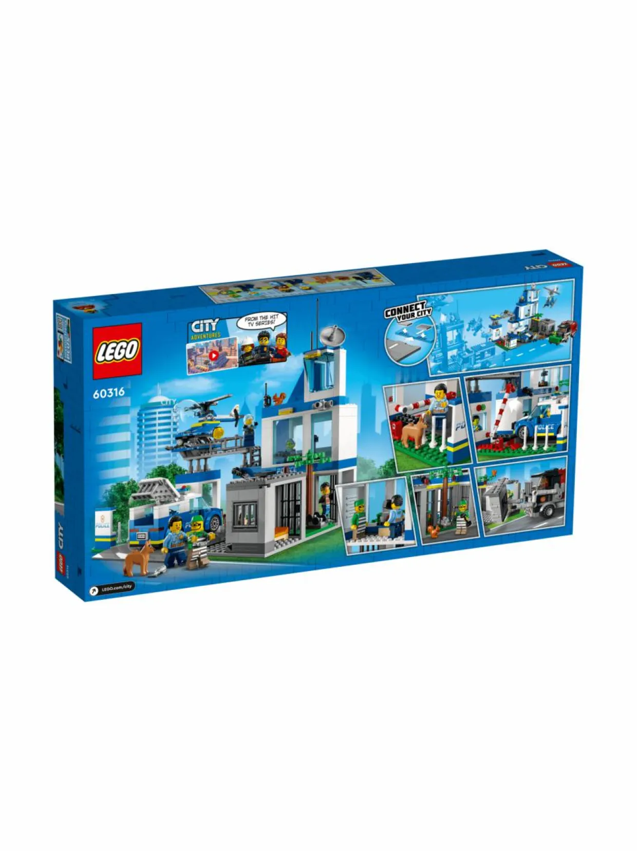 3-kerroksinen LEGO® City Poliisiasema (60316) lelu on täynnä yksityiskohtia, jotka vangitsevat huomion: vankilapakotoiminto, rosvon ulkoilupiha ja koirankoulutusalue. Mukana tulee myös poliisiauto, helikopteri ja rosvojen tuunattu roska-auto sekä tierakennuslevy, jonka voi yhdistää muihin leikkisetteihin. Lisää mukaan 5 minihahmoa, joista 3 tunnistat TV-sarjasta LEGO City Adventures, ja leikit ovat valmiina alkamaan. Hauskaa rakentelua 6 vuotta täyttäneille lapsille! LEGO setti sisältää kuvitetun painetun rakennusoppaan, jossa on vaiheittaiset ohjeet sekä interaktiiviset digitaaliset rakennusohjeet. Ilmainen LEGO Building Instructions sovellus sisältää digitaaliset ohjeet, joiden zoomaus- ja kiertotoiminnoilla lapset hahmottavat rakentamansa mallit kaikista suunnista. LEGO Cityn luova maailma! LEGO City lelut ovat viihdyttäviä rakentelu- ja leikkielämyksiä. Ne sisältävät monipuolisia rakennuksia, realistisia kulkuneuvoja ja hauskoja hahmoja, jotka innostavat loputtomiin, hauskoihin roolileikkeihin.