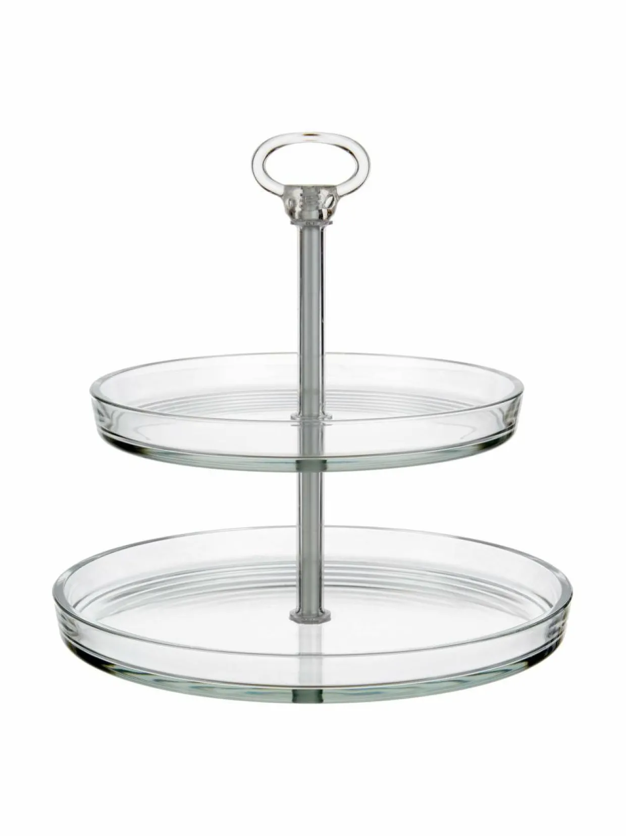 Kaksikerroksisen lasivadin avulla asetat leivokset, makeiset ja pikkuleivät kauniisti tarjolle. Vati on koottava.