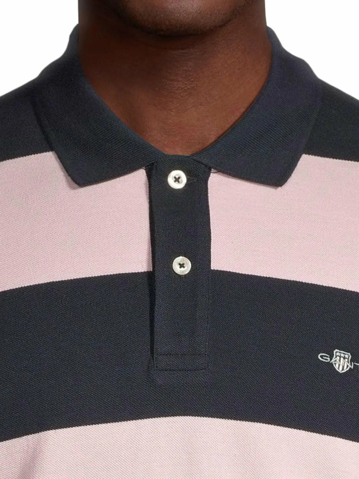 Tämä 100 % luomupuuvillasta valmistettu leveäraitainen pikeepaita on tyylikäs luottovaate jokaiseen vuodenaikaan. Siinä on regular fit ‑mitoitus, klassinen pikeekaulus, kaksinappinen nappilista ja rinnassa kirjailtu GANT-vaakunakuvio.