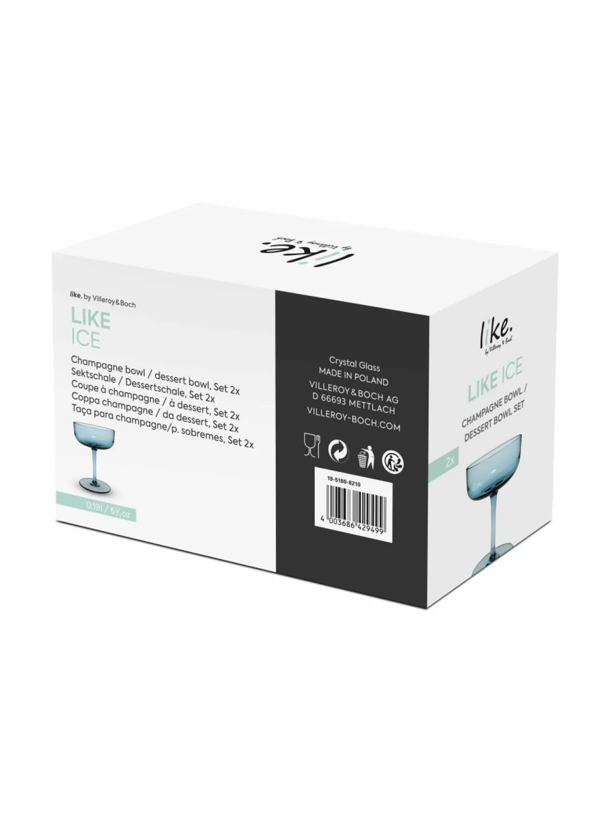 Nauti yhteisistä hetkistä ja juhli elämää kaikessa monipuolisuudessaan. Like Glass -kokoelman lasit yhdistävät leikkisästi spontaanisuuden ja halun löytää jatkuvasti uusia asioita. Coupe-tyylisillä Like-samppanjalaseilla jokainen hetki muuttuu pieneksi juhlaksi. Laseissa on moderni muotoilu ja herkkä värimaailma. Pakkauksessa kaksi samppanjalasia, joita voi hyvin käyttää myös jälkiruokakulhoina.