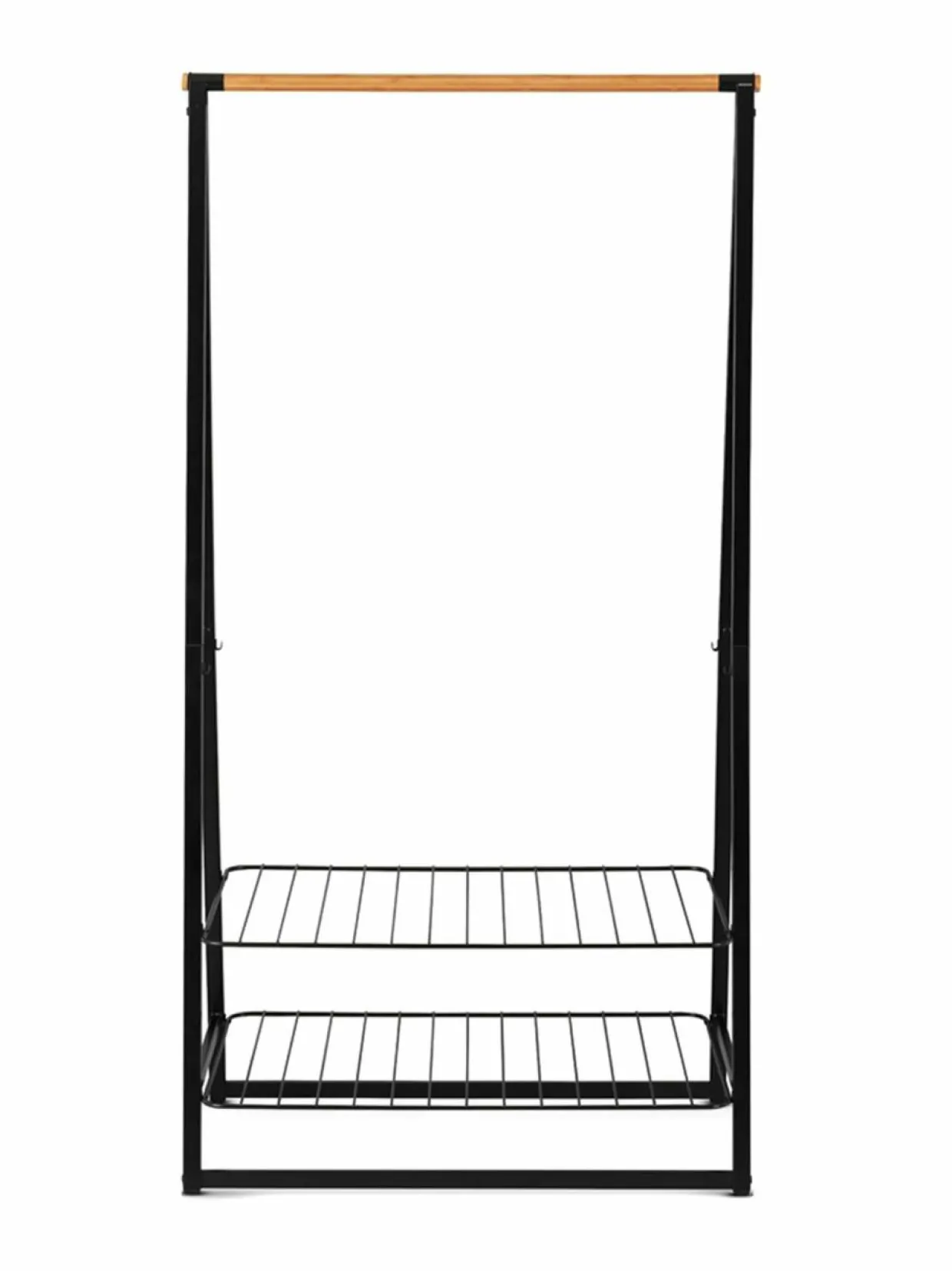 Brabantian sirossa vaatetelineessä voit säilyttää ja kuivattaa vaatteitasi ja kenkiäsi. Tyylikäs teline sopii niin eteiseen, makuuhuoneeseen kuin kodinhoitohuoneeseen. Vaaterekki koostuu bambutangosta, kahdesta hyllystä ja metallijaloista. Korkeus on 190 cm ja leveys 99 cm.
