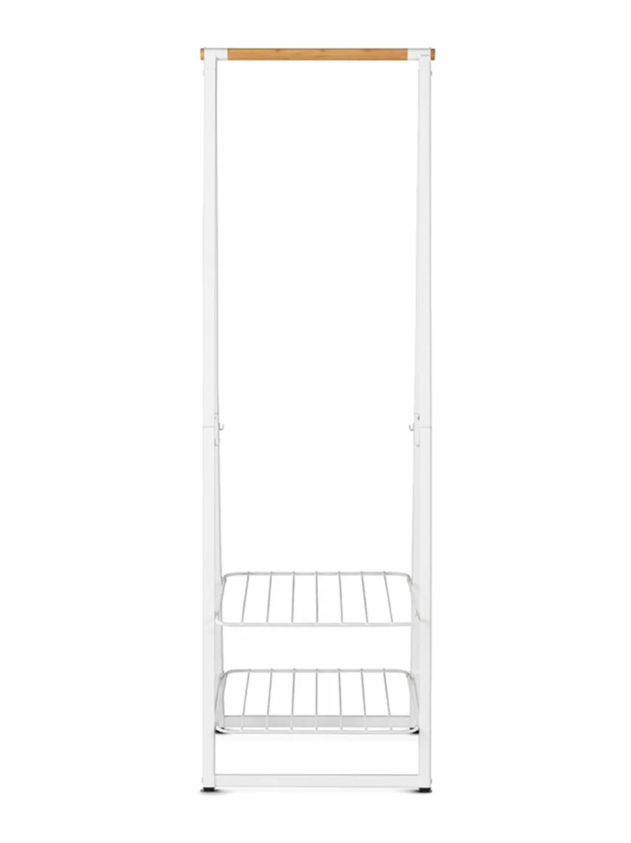 Brabantian sirossa vaatetelineessä voit säilyttää ja kuivattaa vaatteitasi ja kenkiäsi. Tyylikäs teline sopii niin eteiseen, makuuhuoneeseen kuin kodinhoitohuoneeseen. Vaaterekki koostuu bambutangosta, kahdesta hyllystä ja metallijaloista. Korkeus on 190 cm ja leveys 61 cm.