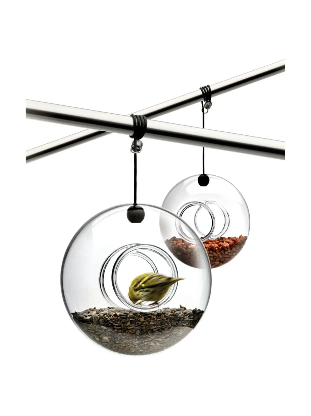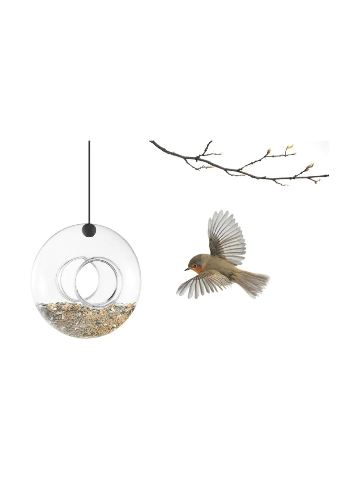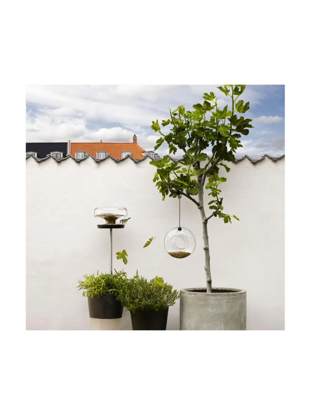 Eva Solon ripustettava, suupuhalletusta lasista valmistettu lintulauta auttaa pihapiirin pikkulintuja selviämään kylmän talven yli. Lasiosaan kiinnitetystä ripustusnarusta lintulauta on helppo kiinnittää esimerkiksi puunoksaan, terassille tai parvekkeelle.