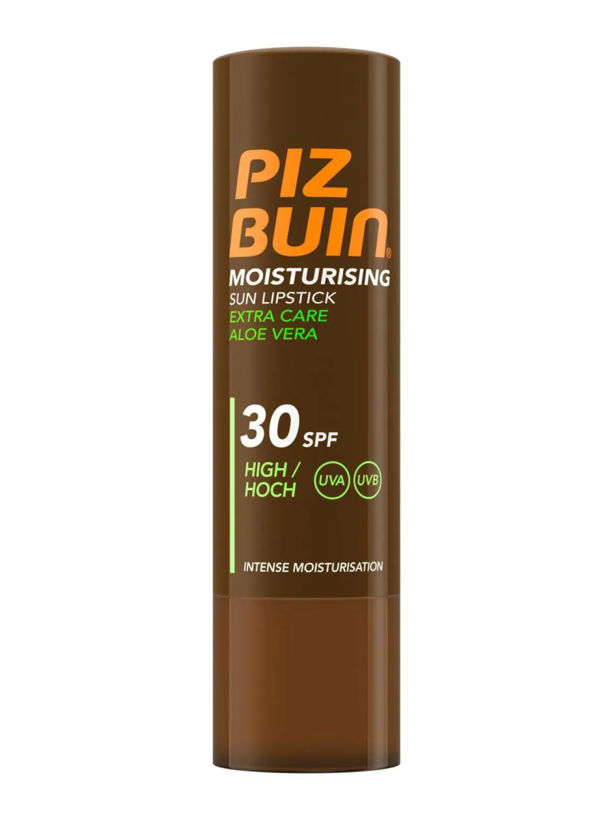 Vedenkestävä Piz Buin Lipstick SPF 30 Aloe -huulivoide suojaa huulia haitallisilta UVA- ja UVB-säteiltä. Kosteuttaa huulia tehokkaasti ja sisältää ihoa kosteuttavaa ja rauhoittavaa Aloe Veraa. Korkea suojakerroin SPF 30.