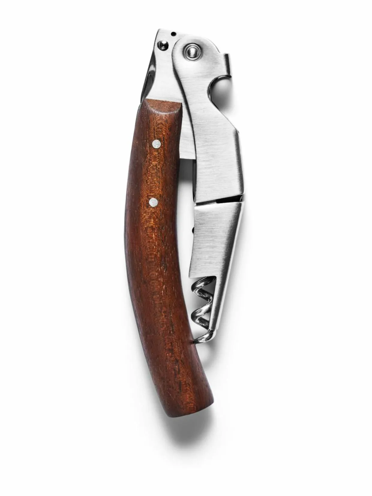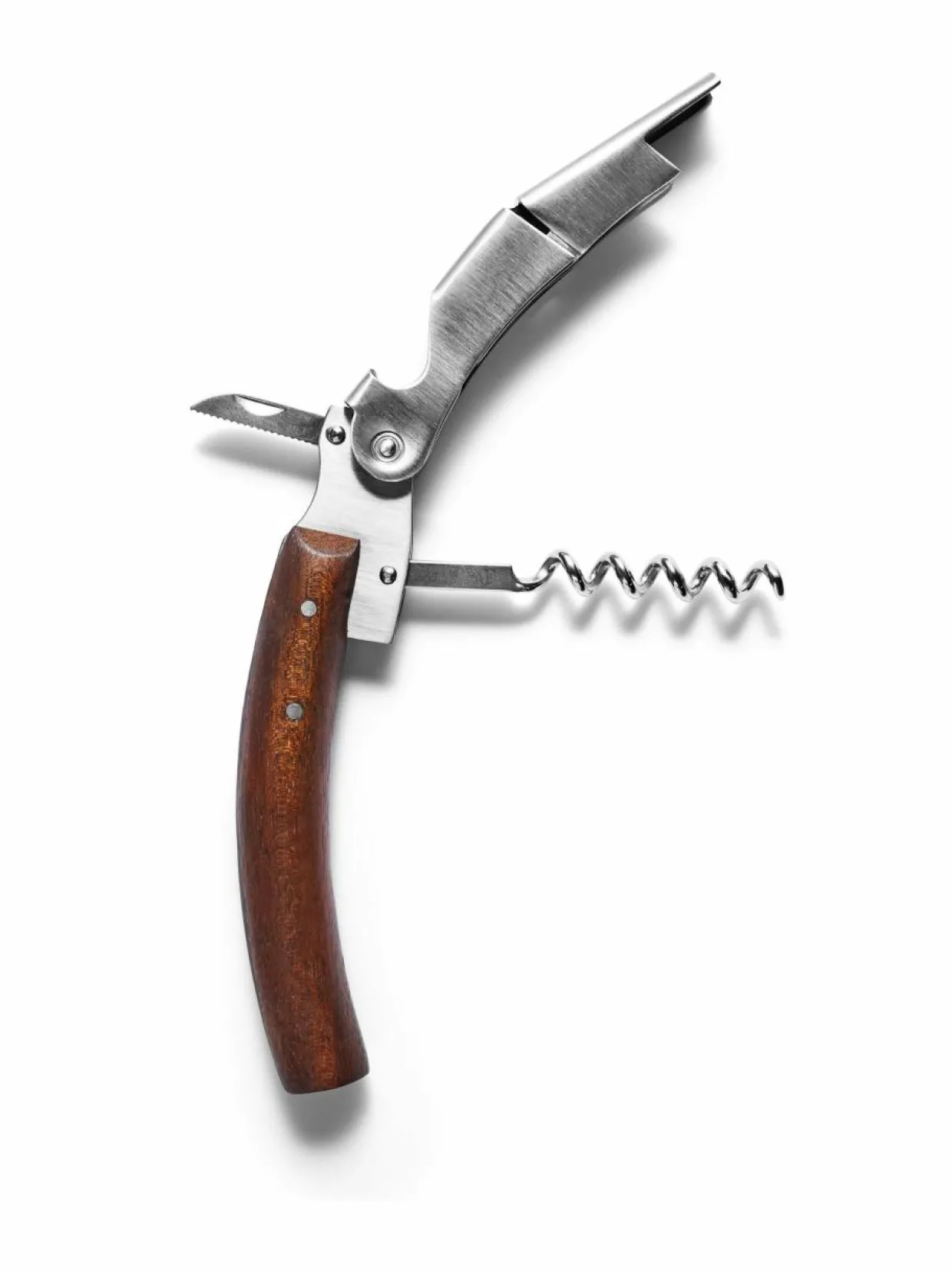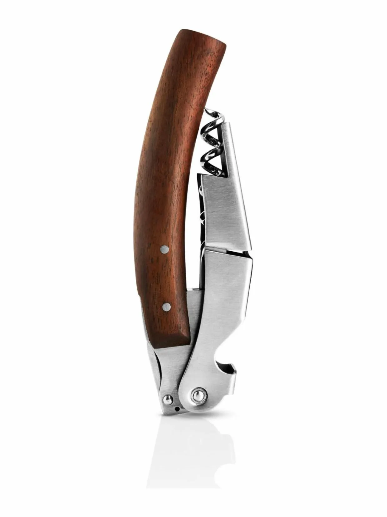 Eva Solo Liquid Lounge -sarjan The Waiter’s -korkkiruuvi on varustettu pienellä veitsellä folion leikkaamista varten ja pullonavaajalla korkkien sekä viinipullon korkkien irrottamista varten. Nerokkaan kaksivaiheisen järjestelmän ansiosta avaat viinipullon ilman korkin rikkoutumisriskiä. Kompakti koko tekee siitä kätevästi säilytettävän ja kannettavan.