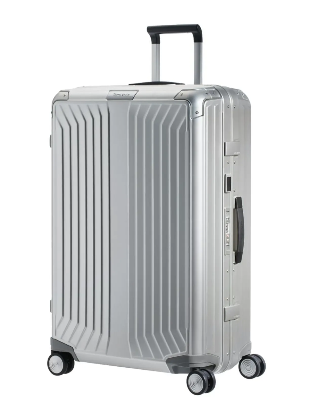 Tämä Samsonite Lite-Box Alu -matkalaukku on valmistettu erittäin vahvasta anodisoidusta alumiinista ja siinä vahvistetut kulmat, jotka suojaavat tavaroitasi matkasi aikana. Laadukkaan alumiinilaukun sisus on suunniteltu käteväksi ristikkäisten kuminauhojen, pienempien taskujen sekä kahden tilanjakajan ansiosta. Matkalaukussa on erittäin hiljaiset ja hyvin rullaavat tuplarenkaat sekä tuplavetokahva. 100 % sisävuorauksen painosta on valmistettu kierrätetystä PET-muovista.