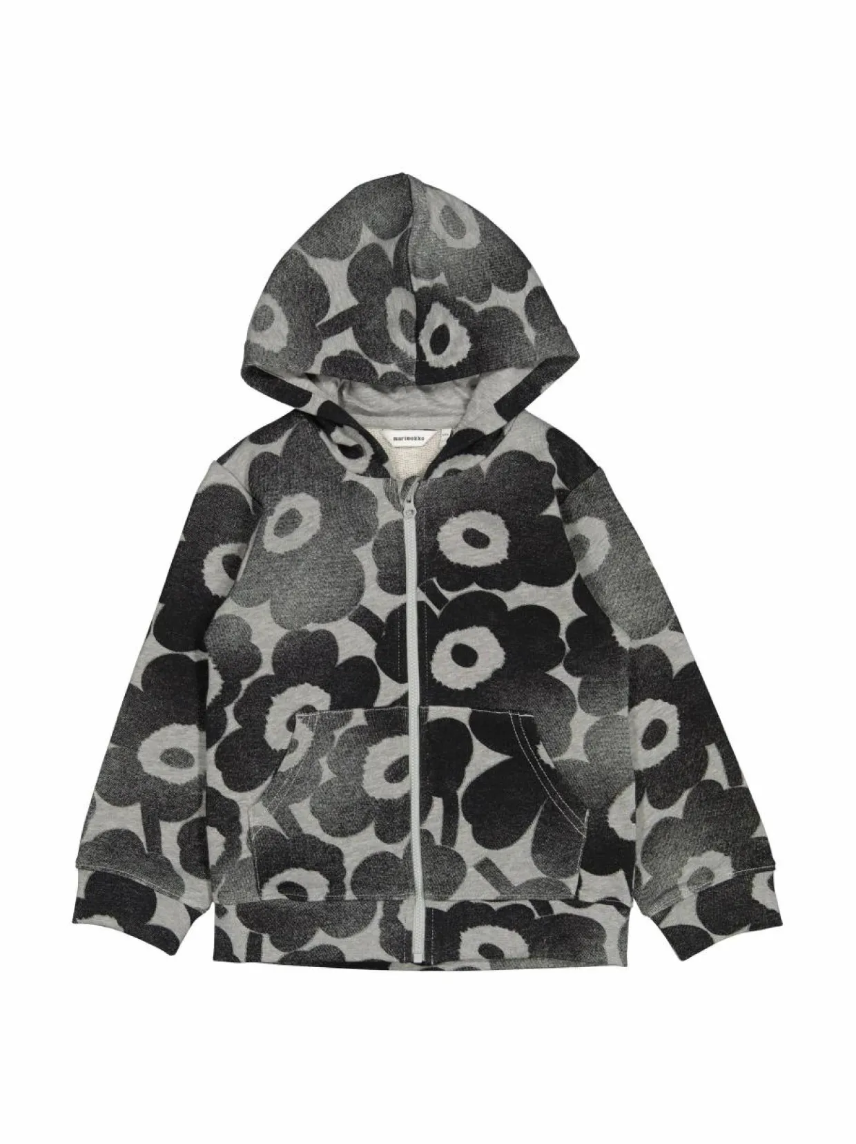 Lasten Logot Unikko -collegehuppari on valmistettu meleeratusta luomupuuvillacollegesta ja siinä on rento istuvuus. Hupparissa on Unikko-kuosi ja edessä vetoketju sekä paikkataskut. Hihansuissa sekä helmassa on leveät resorit.
