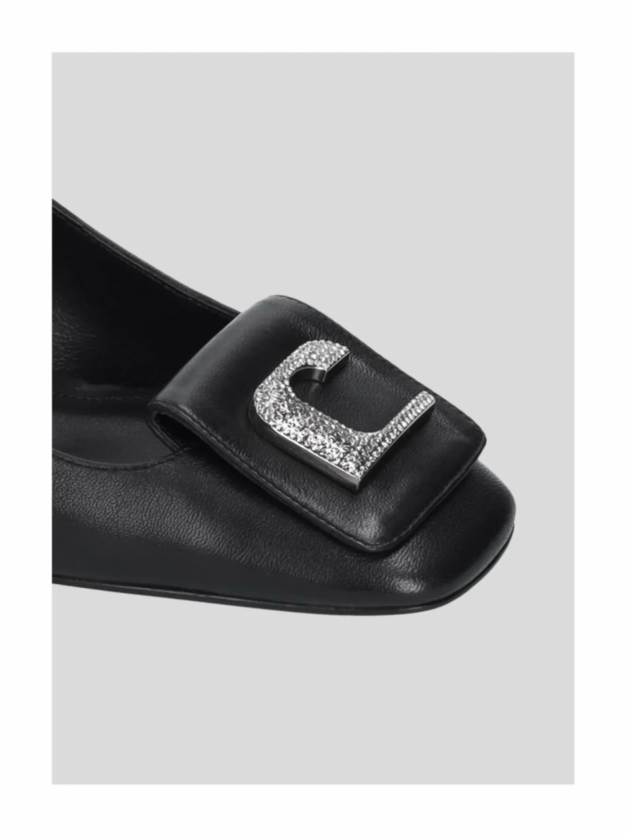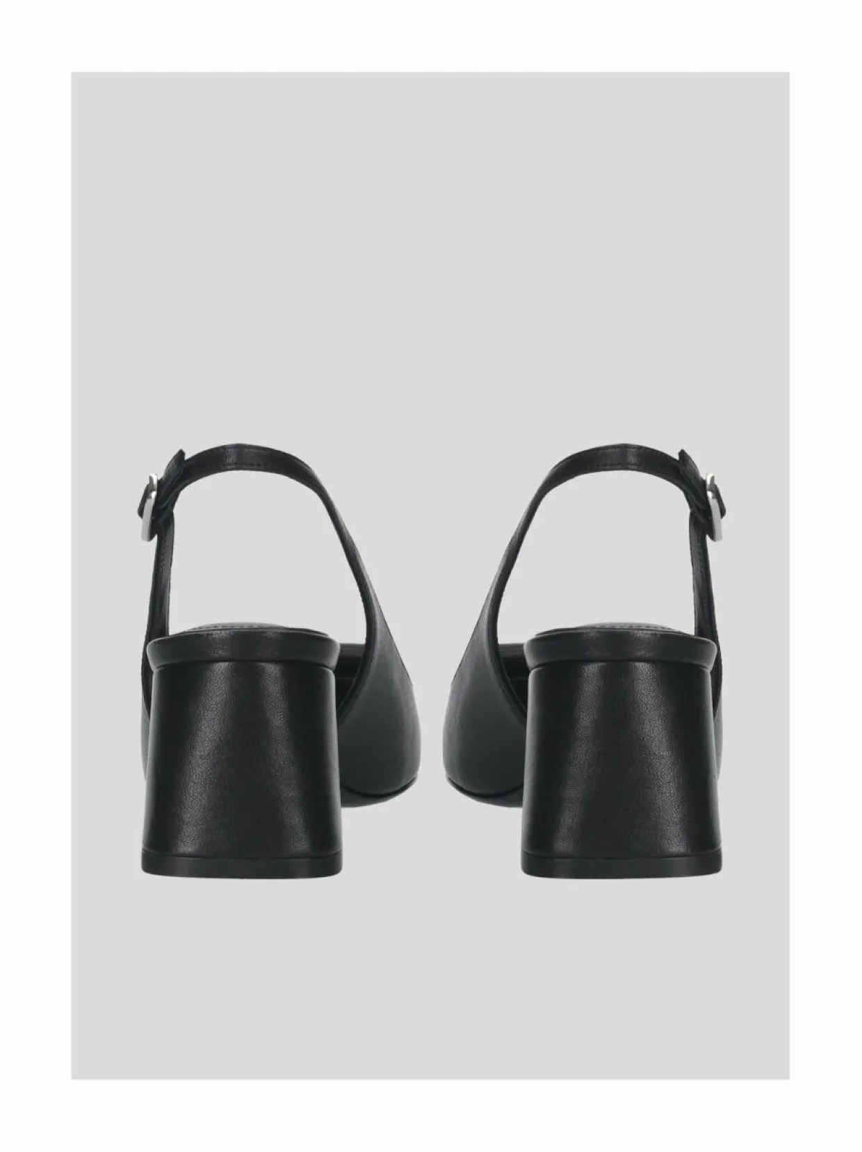 Minimalistiset nahkaiset avokkaat 5,5 cm:n lohkokoroilla. Säädettävä slingback-remmi takaa hyvän istuvuuden. Kärjet ovat neliömäiset ja logomerkillä koristeltu päällinen antaa viimeisen silauksen.