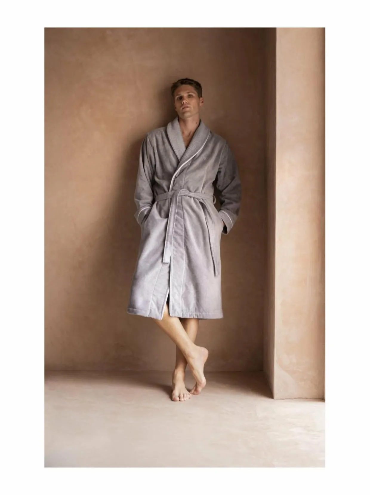 Hugo Bossin Lord-aamutakki on valmistettu samettisestä puuvillasta. Teksturoitua puuvillaa kauluksessa, vyössä ja hihansuissa. Voit kietoutua aamutakin pehmeyteen ja nauttia sen tarjoamasta mukavuudesta jokaisena aamuna tai rentoutumishetkenä kotona.