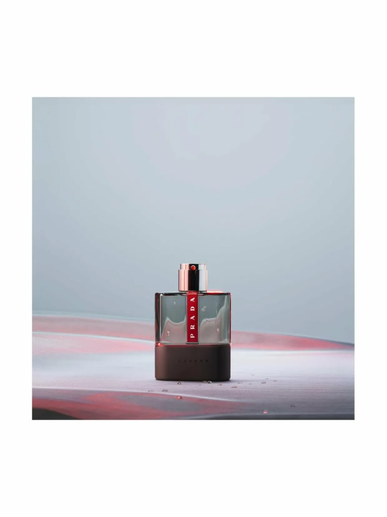 Prada Luna Rossa Carbon Eau de Toilette on mineraalinen tuoksu, jossa metsäiseen fougere-tuoksuun yhdistyy kontrastina intensiivinen laventeli, pelargonian säkenöivä tuoksu, sekä eleganttia ambraa.