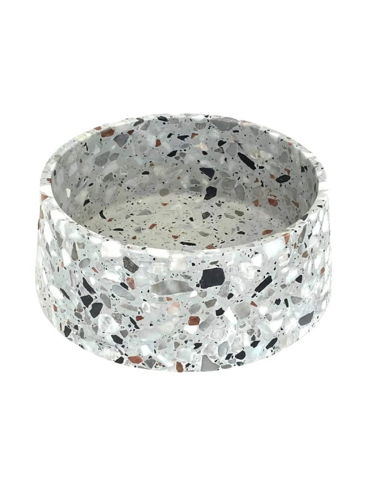 Tämä tyylikäs, ajaton ja aito terrazzo ruokakulho sopii sekä ruualle että vedelle.