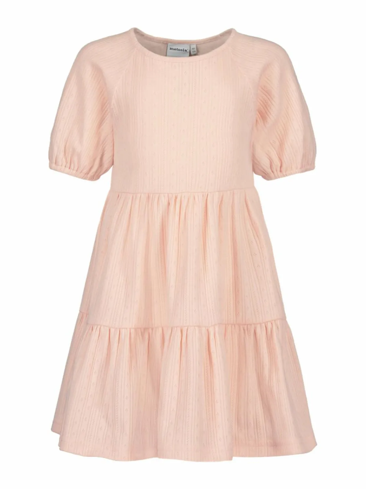Metsola -merkin kerrosmekko on valmistettu pehmeästä ja hengittävästä puuvillasta. Mekko on suunniteltu lyhyillä hihoilla ja pyöreällä pääntiellä. Mekko on helmasta a-linjainen ja siinä on kerroksellinen helma. Mekko sopii täydellisesti niin arkeen kuin juhlaakin. Puuvilla on luonnollinen materiaali, joka on pehmeä ja hengittävä. Se on myös kestävä ja helppohoitoinen. Puuvillaa käytetään laajasti vaatteissa, koska se on erinomainen valinta lapsille, koska se on hellävarainen ja ihoystävällinen materiaali.