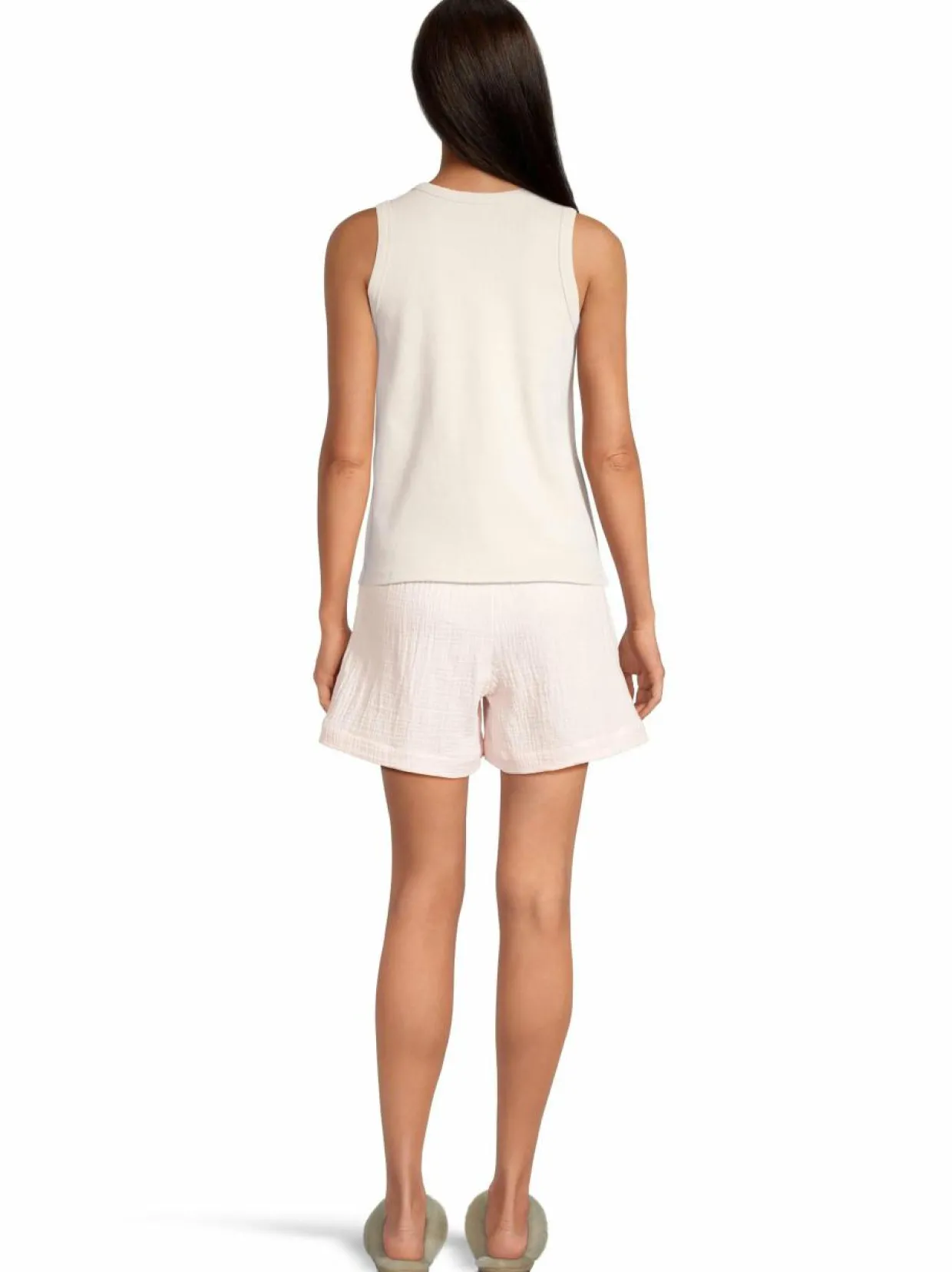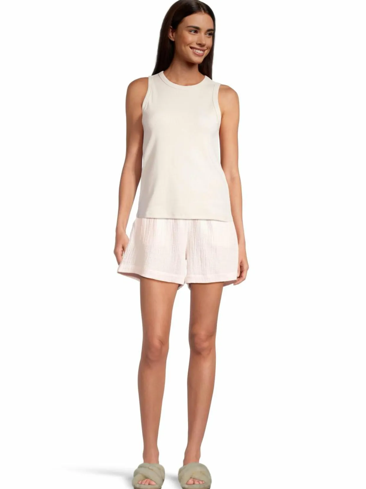 Klassinen perustoppi sopii monipuolisesti eri asukokonaisuuksiin. Ribbimateriaali tuo pintaan eläväisyyttä ja tekee topista hyvin istuvan ja joustavan. Ihoystävällisen luomupuuvillan ja elastaanin yhdistelmä tuntuu pehmeältä ihoa vasten ja tarjoaa mukavuutta koko päivän ajan. Trikootopissa on klassinen pyöreä pääntie ja huolitellut kädentiet, mikä luo siistin ja ajattoman ilmeen. Täydellinen valinta nukkumiseen, rentoutumiseen kotona, mutta sopii myös kesäpäivän menoihin.