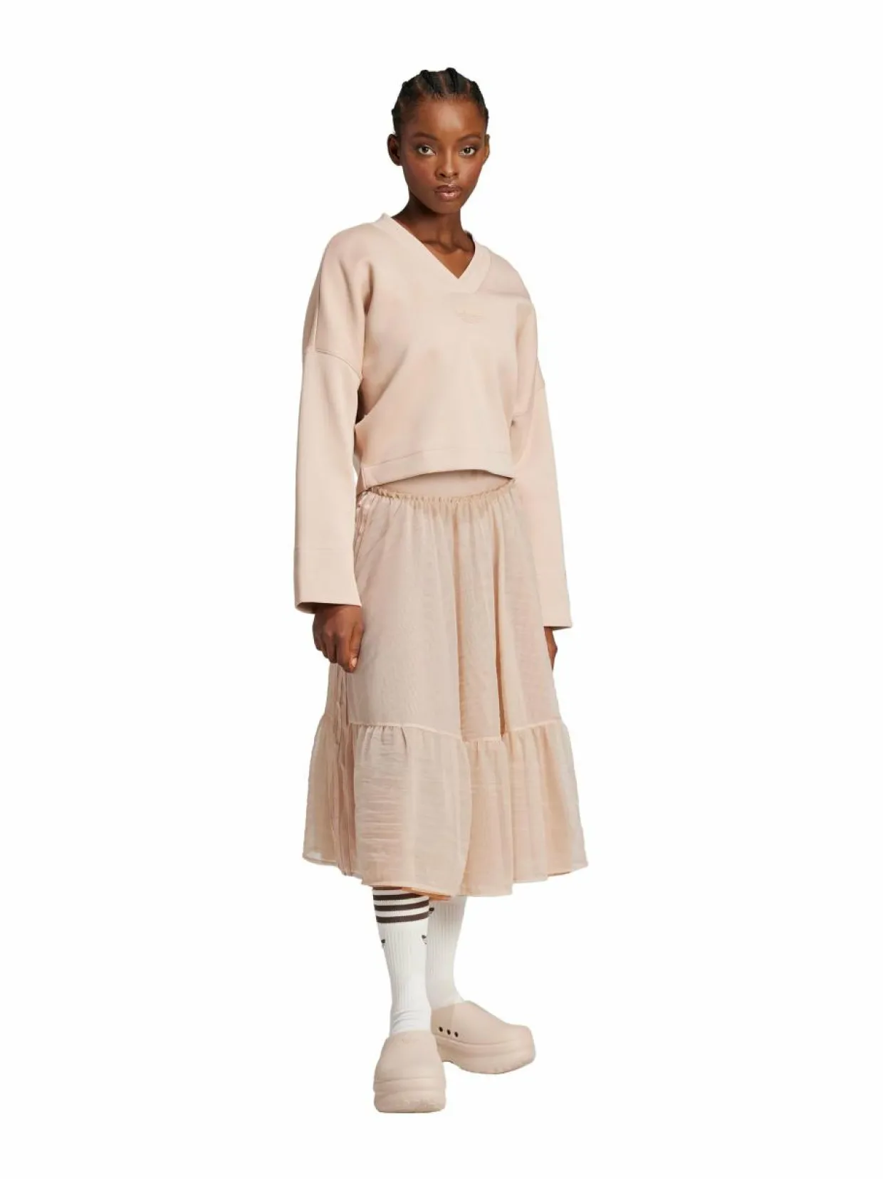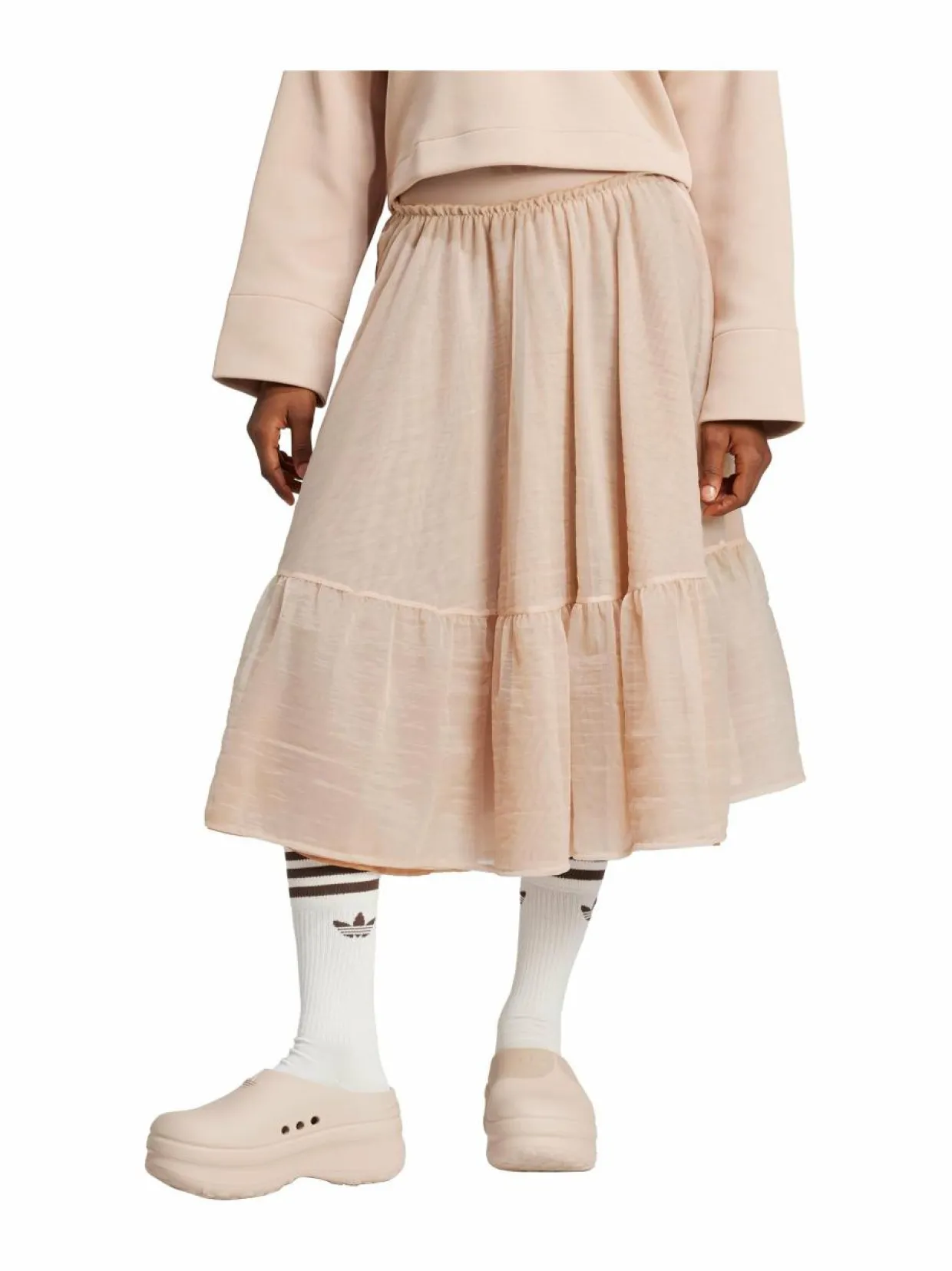 adidas Originalsin maksihame on tyylikäs ja mukava valinta arkeen ja juhlaan. Hame on valmistettu pehmeästä ja hengittävästä polyamidista ja siinä on kaunis ja tyylikäs muotoilu. Hameessa on leveä vyötärönauha, joka antaa mukavan istuvuuden. Hameen helma on levennetty. Hame on täydellinen valinta yhdistettäväksi esimerkiksi t-paitaan, tennareihin tai korkokenkiin.