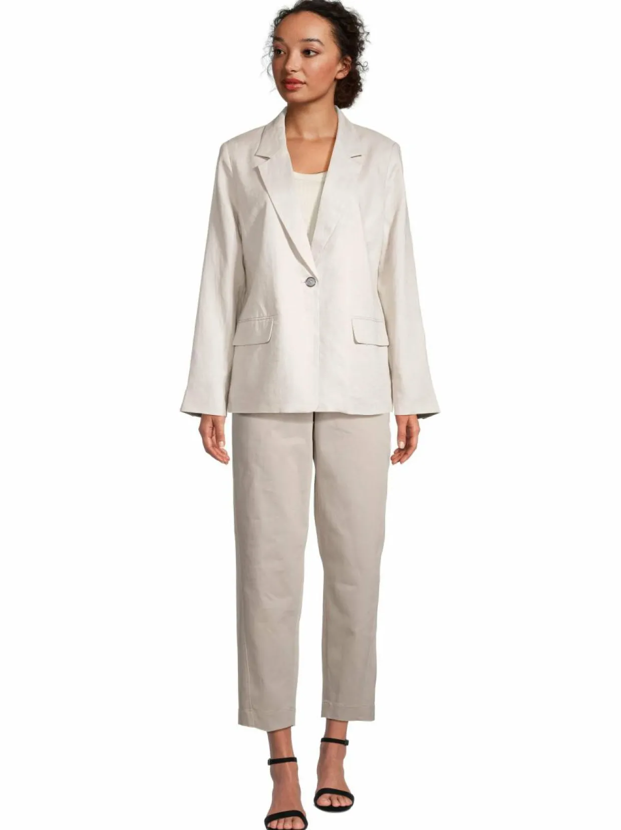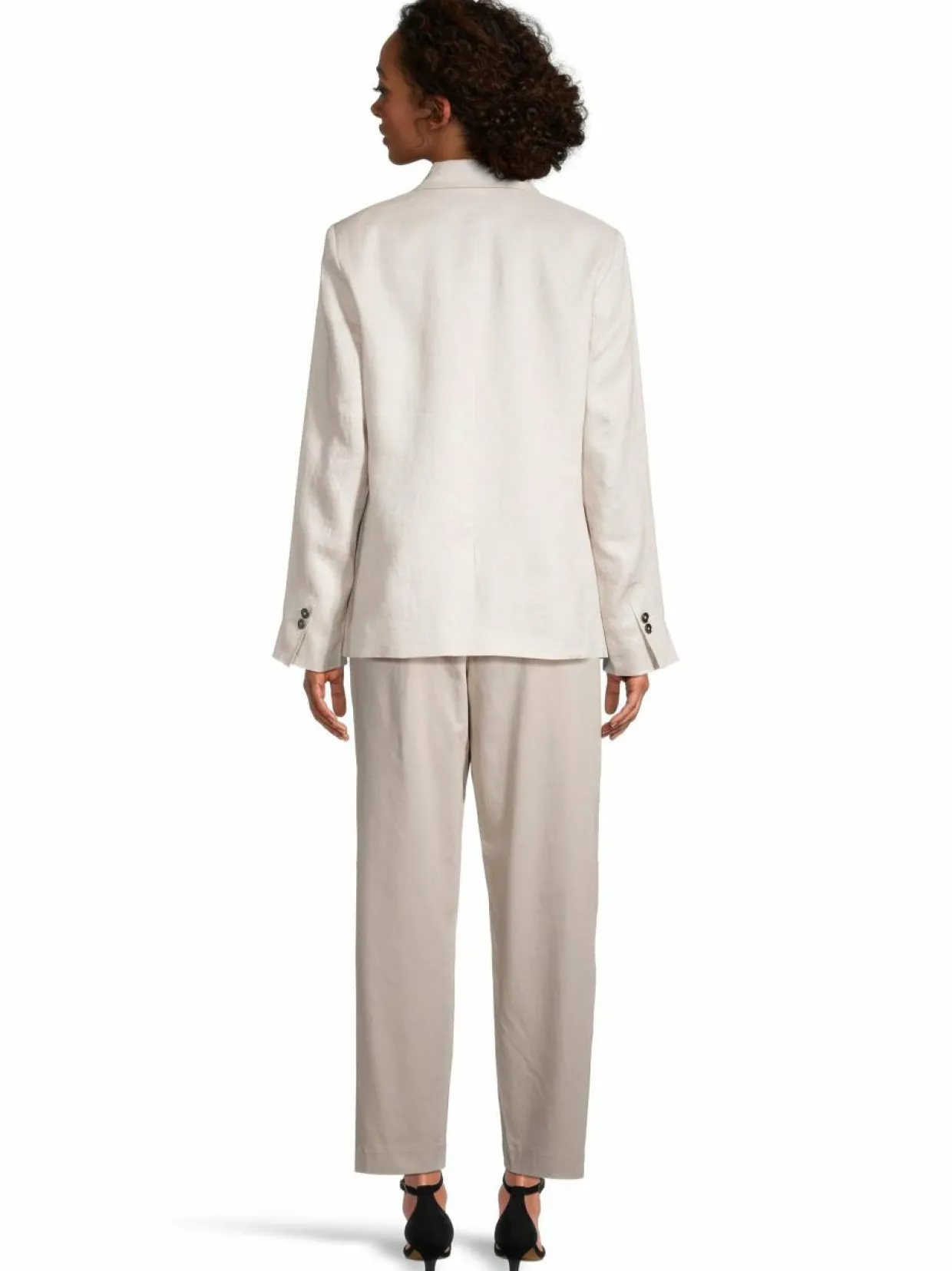 ESSENTIALS by Stockmannin Malin-bleiseri on täydellinen yhdistelmä tyylikkyyttä ja luonnollista keveyttä. Tämä bleiseri on valmistettu 100 % pellavasta, mikä tekee siitä hengittävän ja miellyttävän käyttää, erityisesti lämpimillä säillä. AIRO-pesu viimeistelee kankaan pehmeäksi. Vuori on valmistettu kestävästä tvillikankaasta, joka lisää käyttömukavuutta ja antaa bleiserille ryhtiä. Klassinen yksirivinen napitus ja ajattomat kauluskäänteet tekevät tästä monikäyttöisen ja helposti yhdistettävän niin työpukeutumiseen kuin rentoihin vapaa-ajan asuihin.