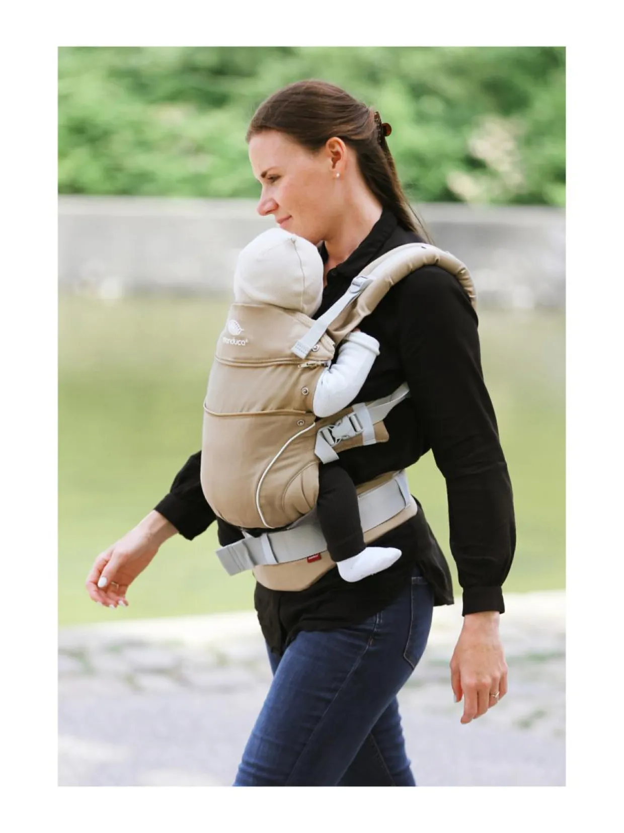 Kantoreppu kasvaa lapsen mukana ja vastasyntynyttä voi kantaa ortopedisesti oikeassa asennossa integroidun vauvatuen avulla. Integroitu korkeudensäätöosa takaa mukavat kantohetket aina 20 kg painoon asti. Pääntuki on monipuolisesti säädettävä ja siitä on iloa erityisesti lapsen nukahdettua.