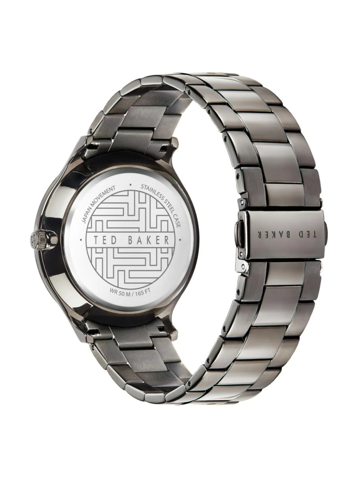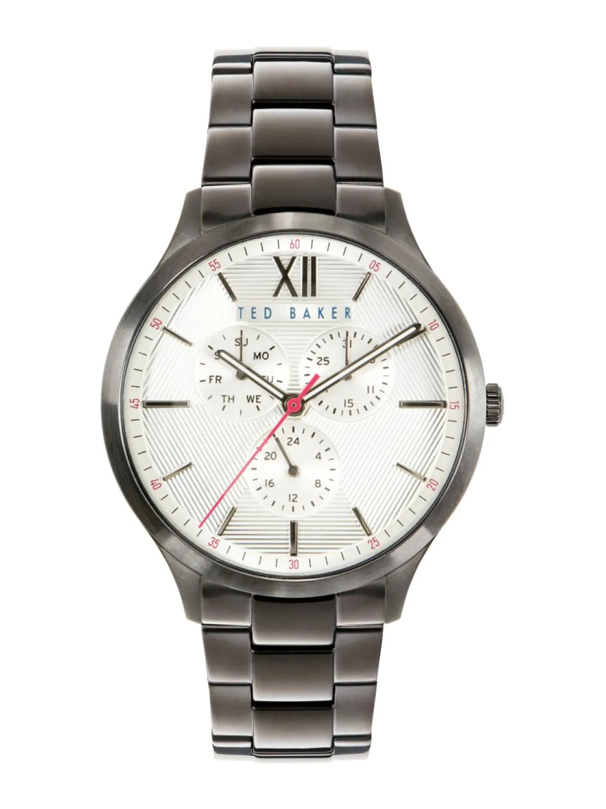 Ted Baker Manhatt 40mm mallisto sopii vaativaankin makuun. Kellon tummanharmaanvärinen runko on valmistettu ruostumattomasta teräksestä. Sen leveys on 40mm ja paksuus on 9mm. Rannekkeena tässä mallissa on tummanharmaanvärinen ranneke, joka on valmistettu ruostumattomasta teräksestä. Valkoisessa kellotaulussa on 24 tunnin näyttö sekä pienemmät näytöt viikonpäiville ja päivämäärille. Sekuntiviisari on punainen. Kellossa on mineraalilasi ja kvartsikoneisto. Kellon vesitiiviys on 5ATM. Ted Baker kelloilla on 2 vuoden takuu.
