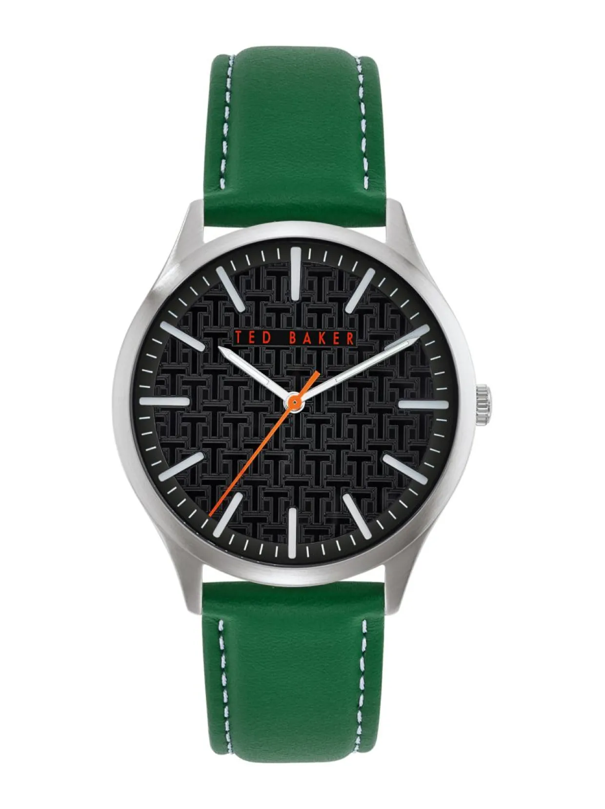 Ted Baker Manhatt 40mm mallisto sopii vaativaankin makuun. Kellon hopeanvärinen runko on valmistettu ruostumattomasta teräksestä. Sen leveys on 40mm ja paksuus on 9mm. Rannekkeena tässä mallissa on vihreä nahkaranneke. Mustassa kellotaulussa on hopeanväriset indeksit ja punainen sekuntiviisari. Kellossa on mineraalilasi ja kvartsikoneisto. Kellon vesitiiviys on 5ATM. Ted Baker kelloilla on 2 vuoden takuu.