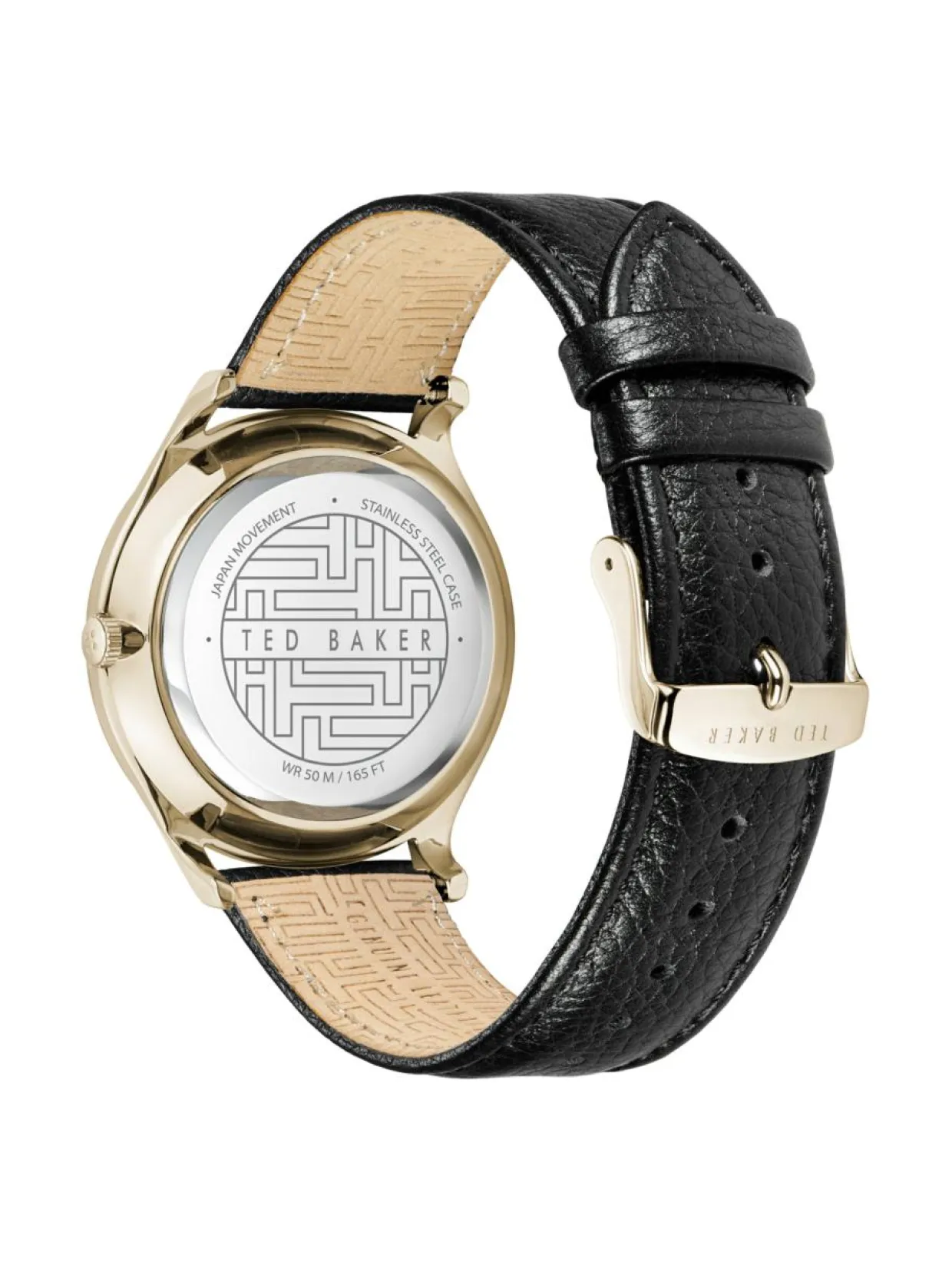 Ted Baker Manhatt 40mm mallisto sopii vaativaankin makuun. Kellon kullanvärinen runko on valmistettu ruostumattomasta teräksestä. Sen leveys on 40mm ja paksuus on 9mm. Rannekkeena tässä mallissa on musta nahkaranneke. Hopeanvärisessä taulussa on kaiverruskuviointi. Sekuntiviisari on punainen. Kellossa on mineraalilasi ja kvartsikoneisto. Kellon vesitiiviys on 5ATM. Ted Baker kelloilla on 2 vuoden takuu.