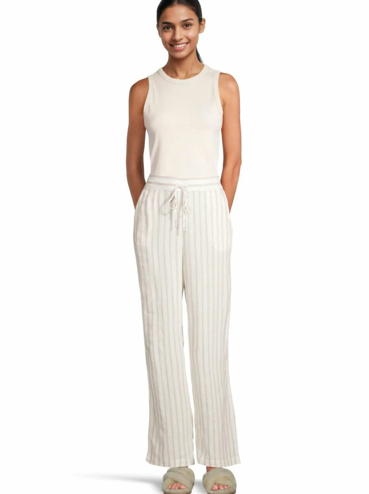 ErityistäVain Stockmannilta Materiaali55 % pellava, 45 % viskoosi Hoito-ohjeetKonepesu 30 °C VäriOFFWHITE/BROWN Avainsanatpyjamat, pellavahousut, pyjamahousut, raitahousut, a+more, lounge housut