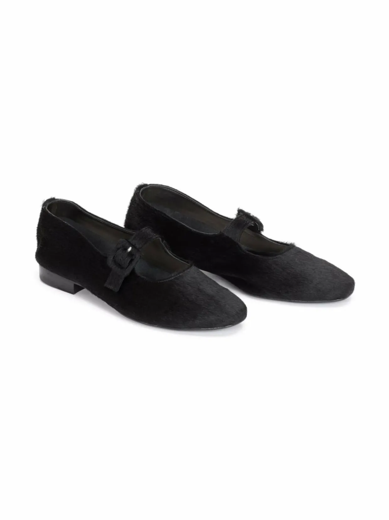 Klassiset Mary Jane -kengät on valmistettu vasikannahasta, ja niissä on solkikiinnitys. Kevyt nahkapohja lisää eleganssia ja käyttömukavuutta. Tyylikäs ponin karva viimeistelee kokonaisuuden.