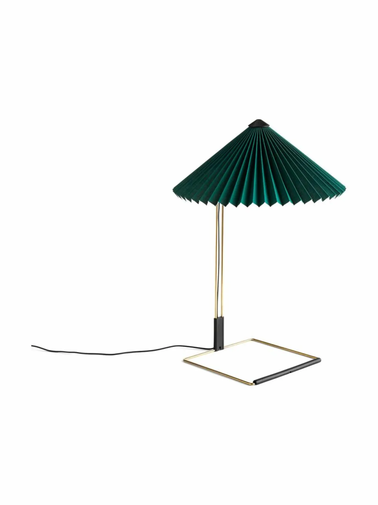 Hay Matin -pöytavalaisimessa on modernia, poeettista muotokieltä, jossa visuaalinen herkkyys yhdistyy fyysiseen jykevyyteen. Lamppu muotoutuu teräslangasta taivutetusta rungosta, joka on viimeistelty kiiltävällä messingillä ja mattamustilla yksityskohdilla. Runkoon on yhdistetty pliseeratusta puuvillakankaasta valmistettu lampunvarjostin. Valonlähteenä toimii kiinteä LED-lamppu, joka tarjoaa pehmeää, alaspäin suuntautuvaa valoa. Himmentimen avulla säädät valon määrää.