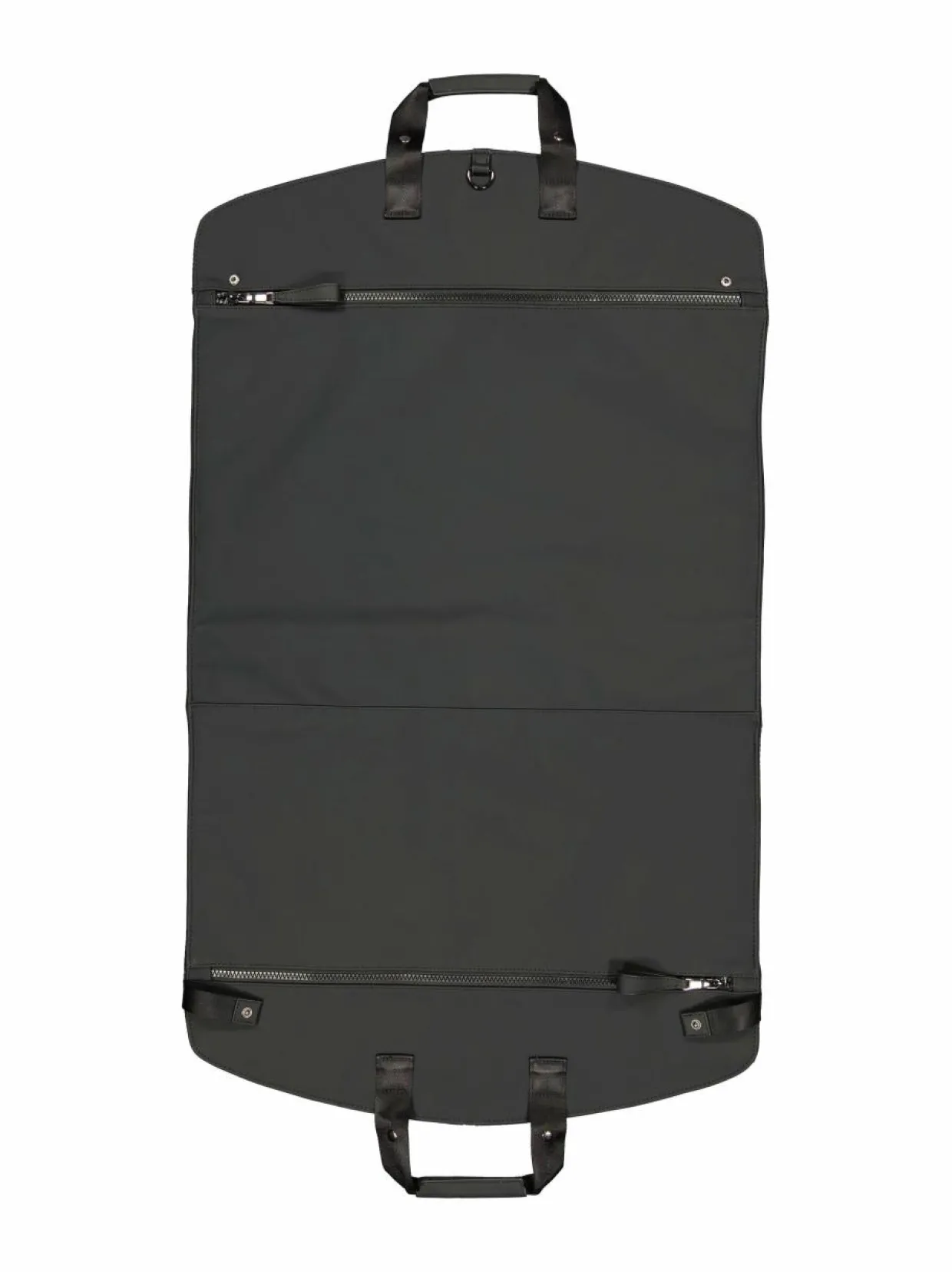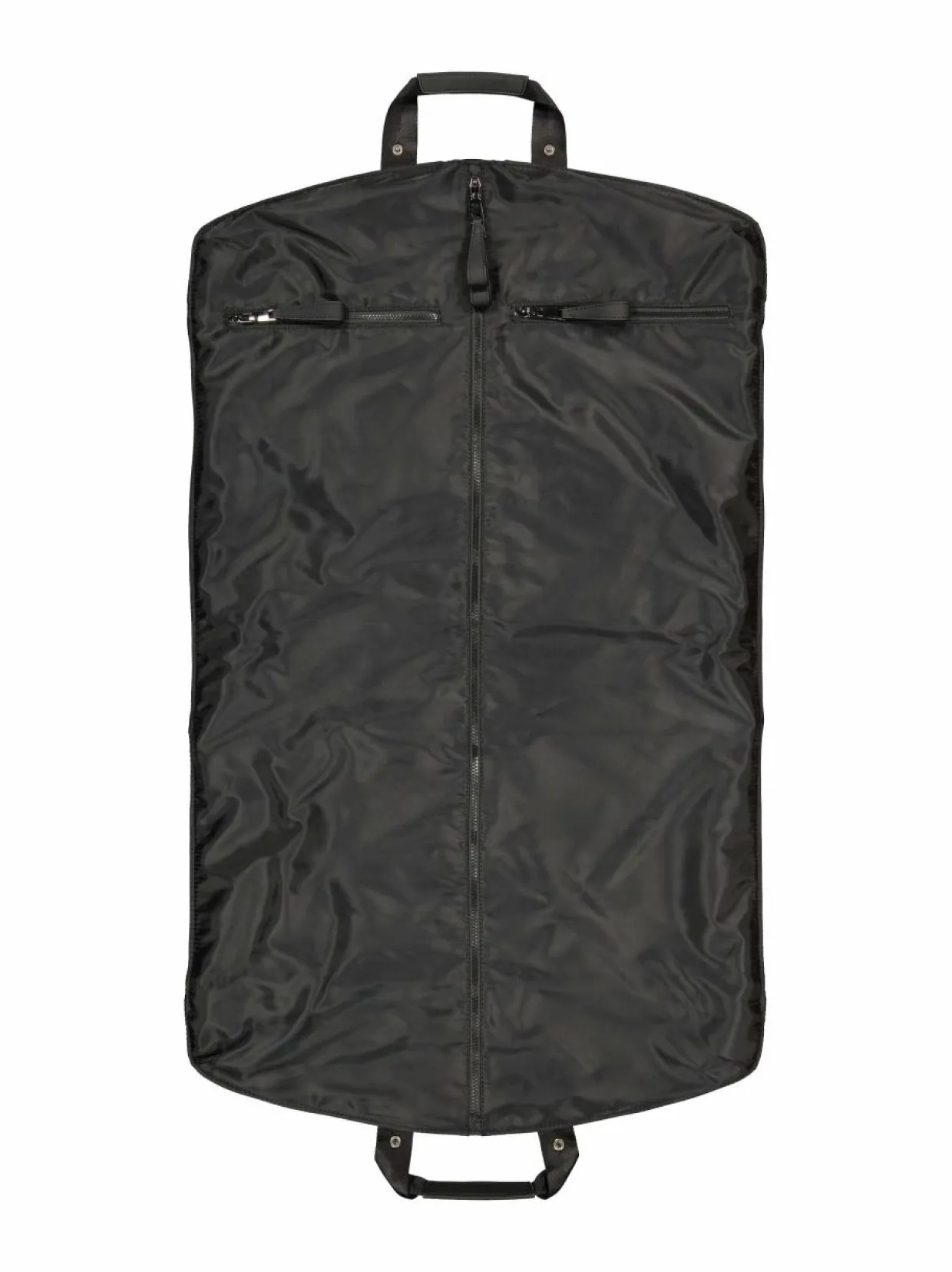 Tyylikäs pukupussilaukku suojaa vaatteet niin matkalla kuin vaatekaapissa.