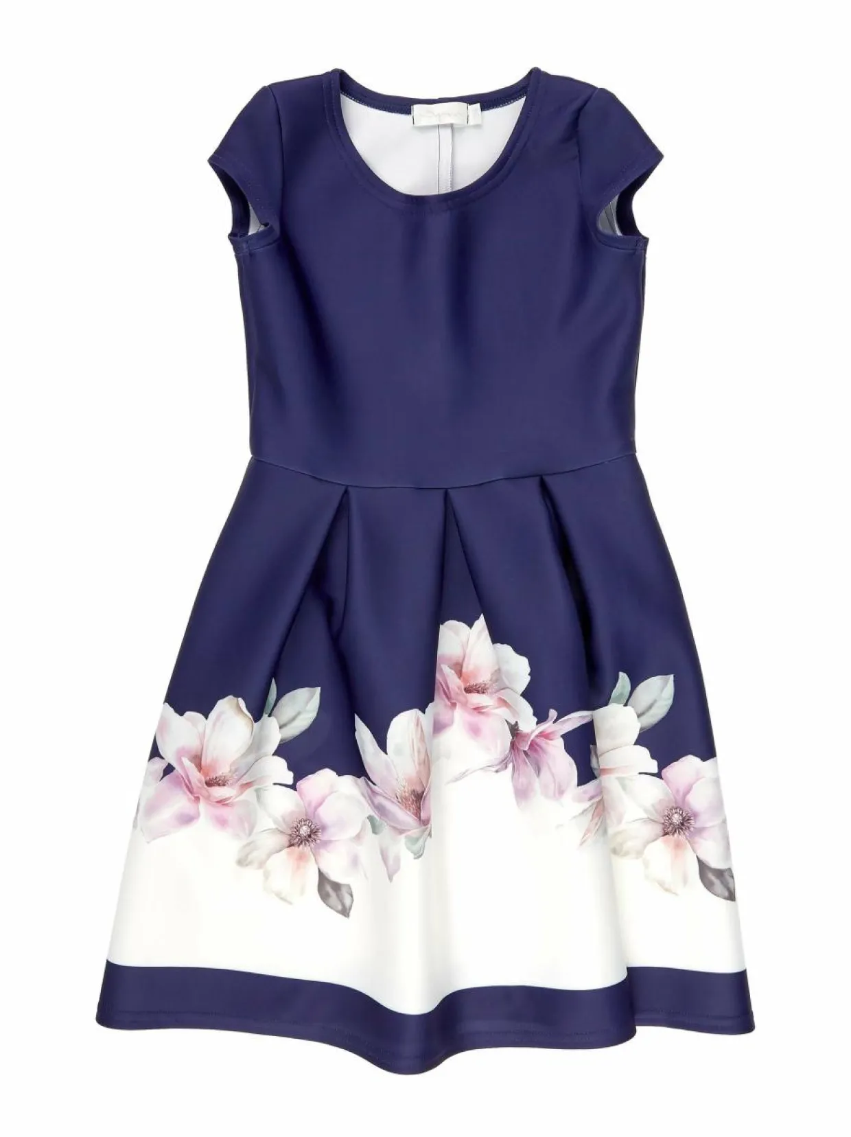 Lyhythihainen Mingnelin-mekko on valmistettu miellyttävän pehmeästä ja joustavasta scuba-materiaalista, se on helppo pukea päälle ja se tuntuu mukavalta käyttää. Rypistymätön ja hyvin venyvä kangas pysyy hyvin muodossaan. Mekon helmaa koristaa kaunis magnoliaboordi.