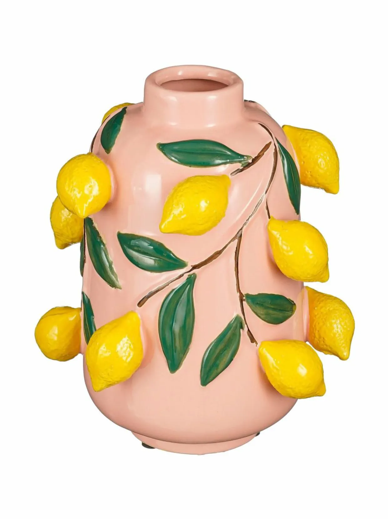 Mica Melika-maljakko on tyylikäs ja pirteä lisä sisustukseen. Tämä keraaminen maljakko on koristeltu eloisilla sitruunoilla ja lehdillä, jotka luovat raikkaan ja kesäisen tunnelman.