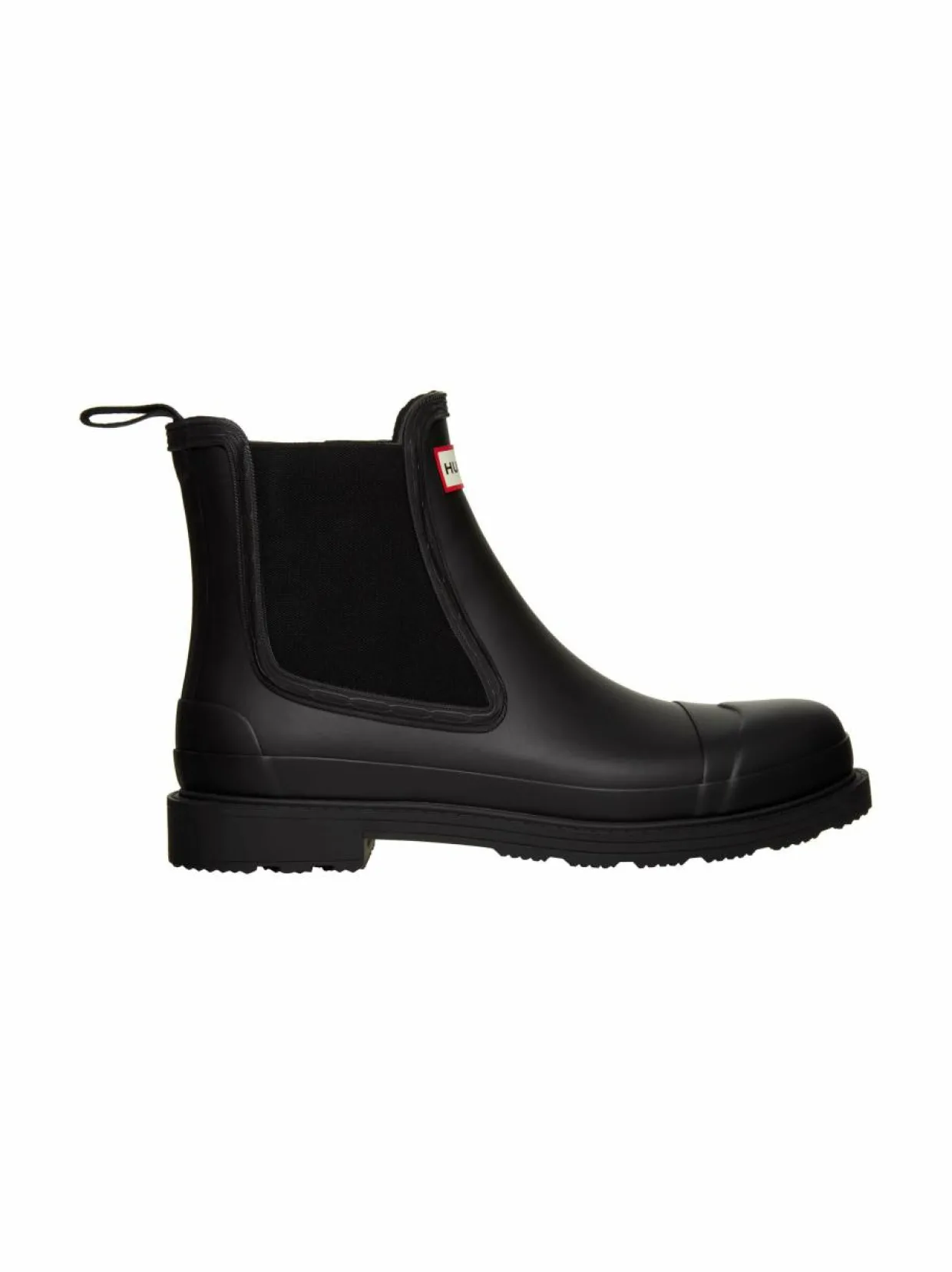 Men’s Commando Chelsea on 100 % vedenpitävä ja mukava kumisaapas. Käytännöllinen lyhytvartinen saapas sopii täydellisesti sadepäiviin, olipa sitten kävelylenkkejä metsässä tai kaupungin kaduilla. Valmistettu kestävästä kumista, vuori ja pohjallinen kierrätettyä polyesteriä. Mattapintaisissa saappaissa on pieni kanta ja edessä Hunterin logo. Varressa olevat venykkeet ja vetolenkki helpottavat pukemista. Kuvioitu ulkopohja antaa hyvän pidon kaikilla alustoilla ja takaa, että kumisaappaat kestävät käyttöä.