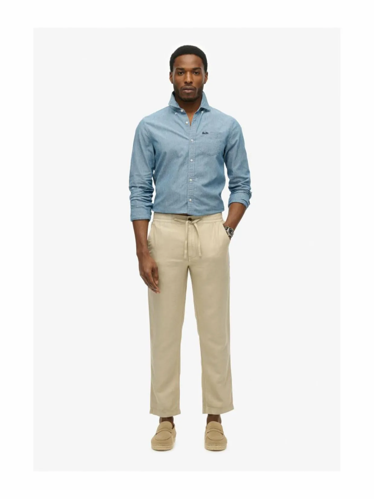 Superdryn Merchant Linen -pellavahousut ovat mukavat ja hengittävät. Ne ovat valmistettu 58 % pellavasta ja 42 % luomupuuvillasta. Niissä on joustava vyötärö kiristysnauhoilla. Ne sopivat täydellisesti kesäpäiviin. Housuissa on suorat lahkeet ja ne ovat hieman leveämmät vyötäröltä. Ne sopivat täydellisesti rentoon tyyliin. Mallissa on kaksi sivutaskua ja kaksi takataskua.