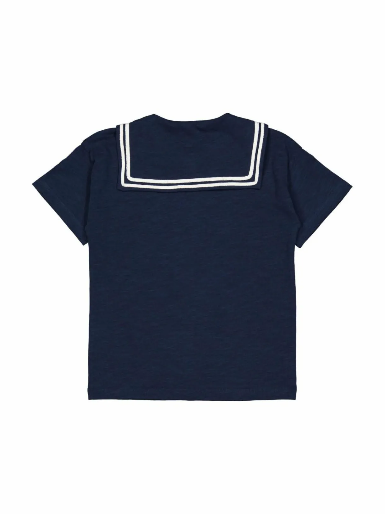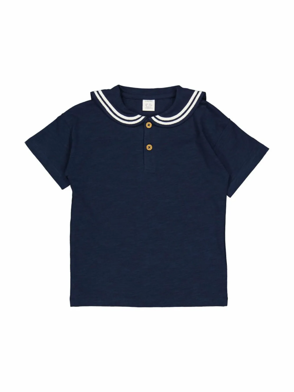 Lasten lyhythihainen t-paita on pehmeää puuvillaa. Siinä on merimieskaulus ja osittainen nappikiinnitys edessä. Paita on mukavan joustavaa laatua.