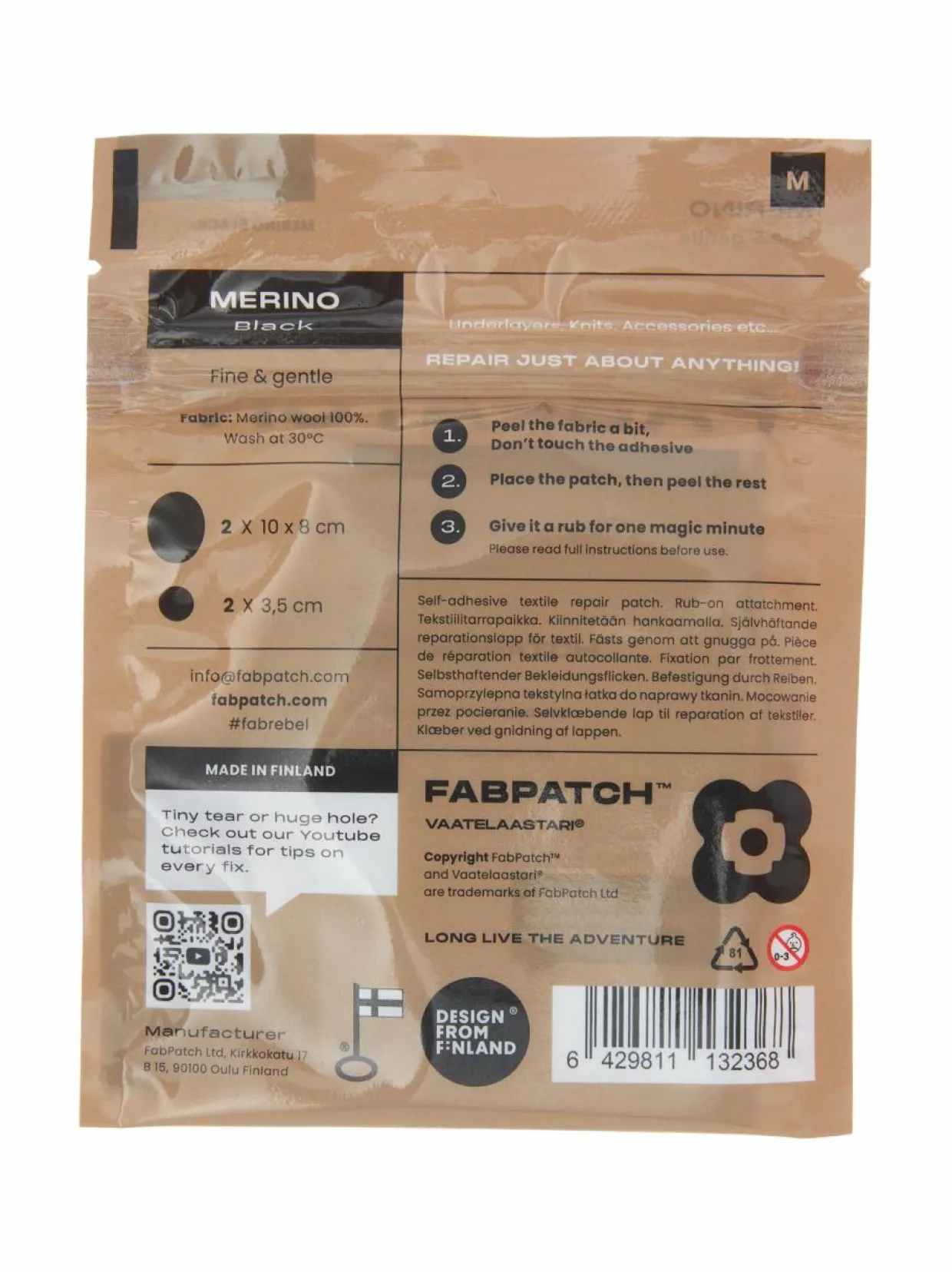 Vaatteiden korjaaminen ei ole koskaan ollut näin helppoa ja hauskaa! Paikkaa, peitä tai koristele – Vaatelaastari® kiinnittyy helposti hankaamalla, ilman silitystä tai ompelua. Niiden Vaatelaastari® -paikkojen tekstiilimateriaali on joustavaa ja pehmeää 100% merinovillaneulosta. Pakkaus sisältää 4 kpl ihanan pehmeitä merinovillaisia Vaatelaastari® -paikkoja. Anna näillä hankaamalla kiinnittyvillä merinopaikoilla lisää käyttöikää esimerkiksi merinovillaisille kerrastoille, urheiluvaatteille ja asusteille. Vinkki: aseta merinopaikka vaatteen nurjalle puolelle, jolloin pehmeä villapinta tulee ihoa vasten.