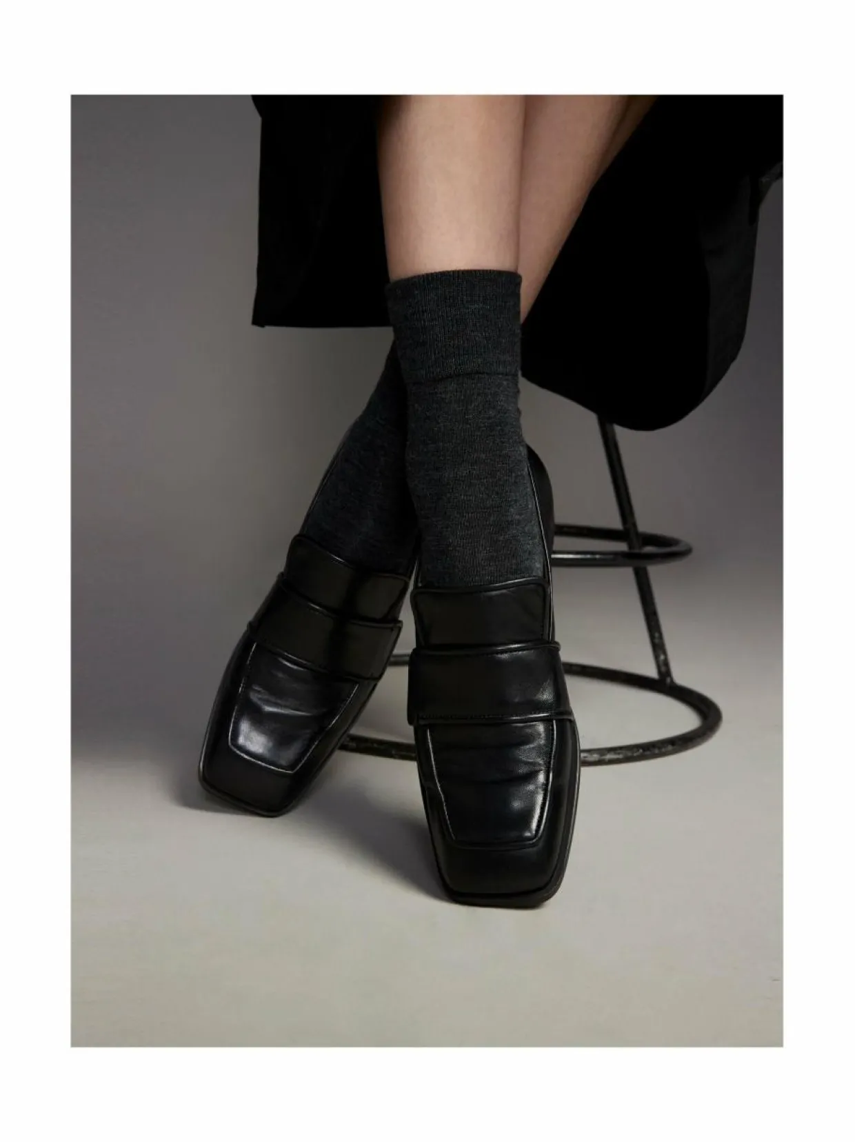 Hengittävät ja lämpimät sukat ovat pehmeää merinovilla-polyamidia, joka tuntuu miellyttävän sileältä ihoa vasten. Materiaaliin on lisätty myös runsaasti joustoa. Mukavan leveä resori varressa lisää käyttömukavuutta.