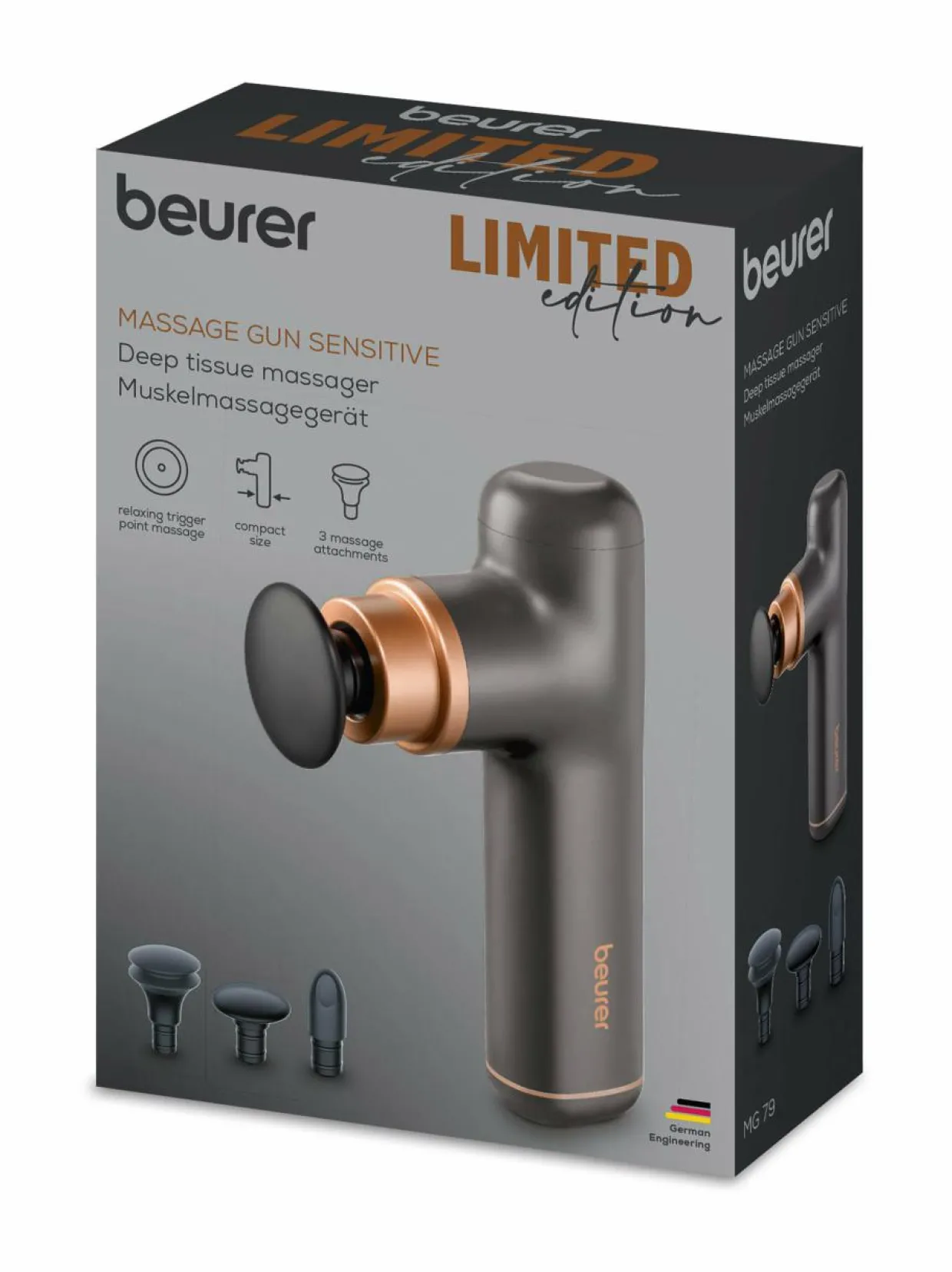 Beurer MG79 Limited Edition -lihashuoltovasara on tehokas ja kompakti hierontalaite, joka sopii erinomaisesti lihasten rentouttamiseen ja palautumisen edistämiseen. Laite on helppokäyttöinen ja siinä on kolme nopeusasetusta, joiden avulla voit säätää hieronnan voimakkuutta tarpeidesi mukaan. Se on myös kevyt ja helppo kuljettaa mukana, joten voit ottaa sen mukaasi treenille tai matkalle. Laite on varustettu LED-valoilla, jotka näyttävät akun varauksen ja valitun tehotason. Litium-ioniakun ansiosta Beurer MG79 lihashuoltovasara tarjoaa jopa 3 tunnin käyttöajan yhdellä latauksella.