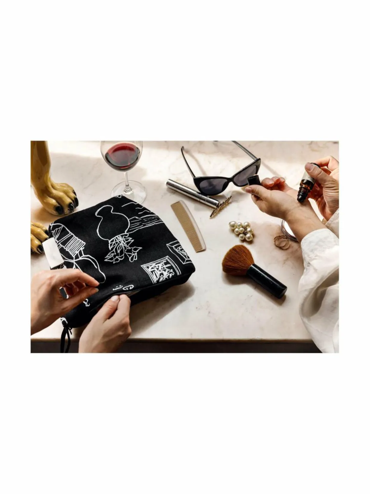SKU: SKUKeE5Tpe4lT Categories: Kosmetiikka, Meikit, Toiletti- & Meikkilaukut Tags: BLACK FABRIC/WHITE PRINT, Saana Ja Olli Brand: Saana Ja Olli