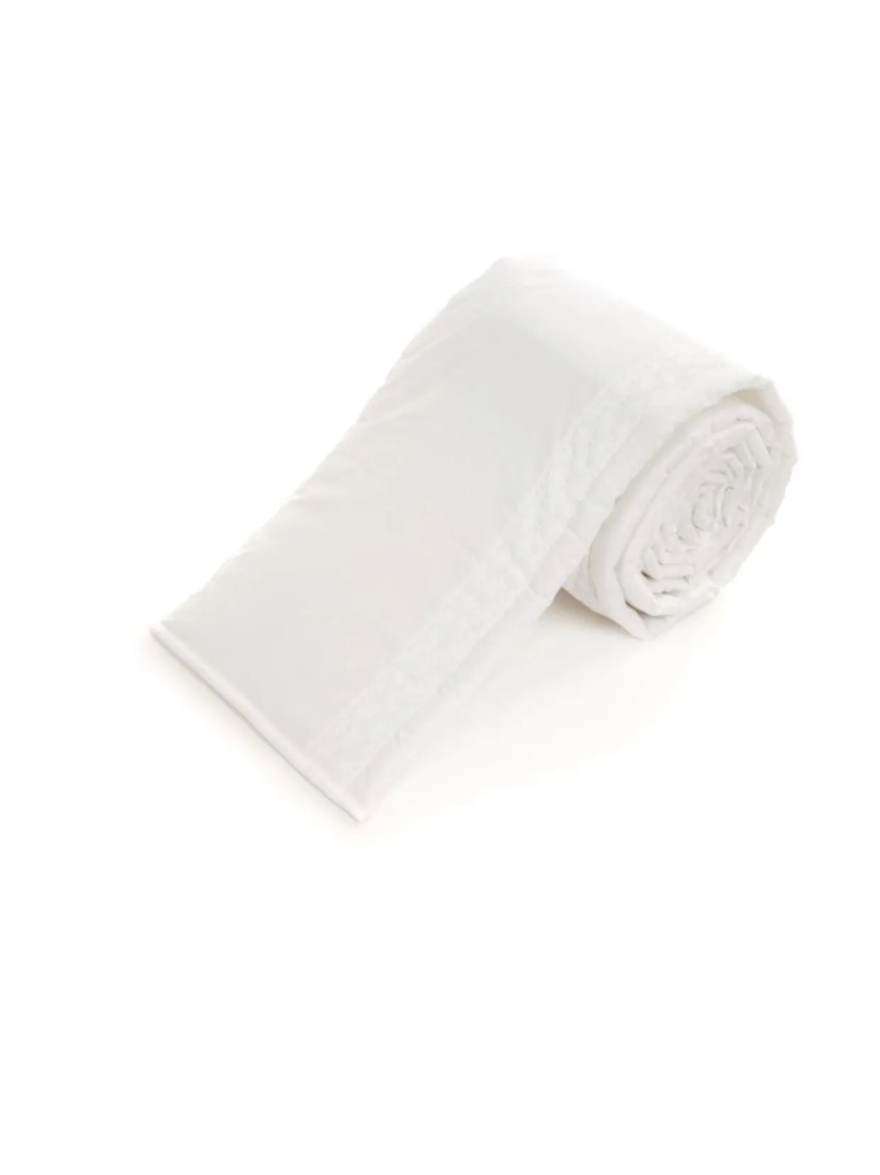 Milana reunapehmuste 360cm valkoinen on suunniteltu sopimaan standardikokoiseen pinnasänkyyn, joka on kooltaan 60x120cm. Valkoisessa reunapehmusteessa on kaunis valkoinen pitsinauha. Reunapehmuste on 100% puuvillaa ja se voidaan kiinnittää pinnasänkyyn nauhojen avulla.