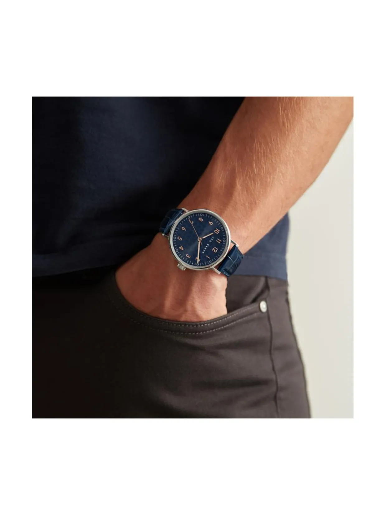 Ted Baker Mimosaa 41mm rannekellon ohut runko on miellyttävän huomaamaton ranteessa. Helppolukuinen numeronäyttö ja taulun tyylikäs kuviointi ovat pettämätön yhdistelmä. Kellon hopeanvärinen runko on valmistettu ruostumattomasta teräksestä. Sen leveys on 41mm ja paksuus on 6,5mm. Rannekkeena tässä mallissa on sininen nahkaranneke. Sinisessä taulussa on kaiverruskuviointi. Kellossa on mineraalilasi ja kvartsikoneisto. Kellon vesitiiviys on 5ATM. Ted Baker kelloilla on 2 vuoden takuu.