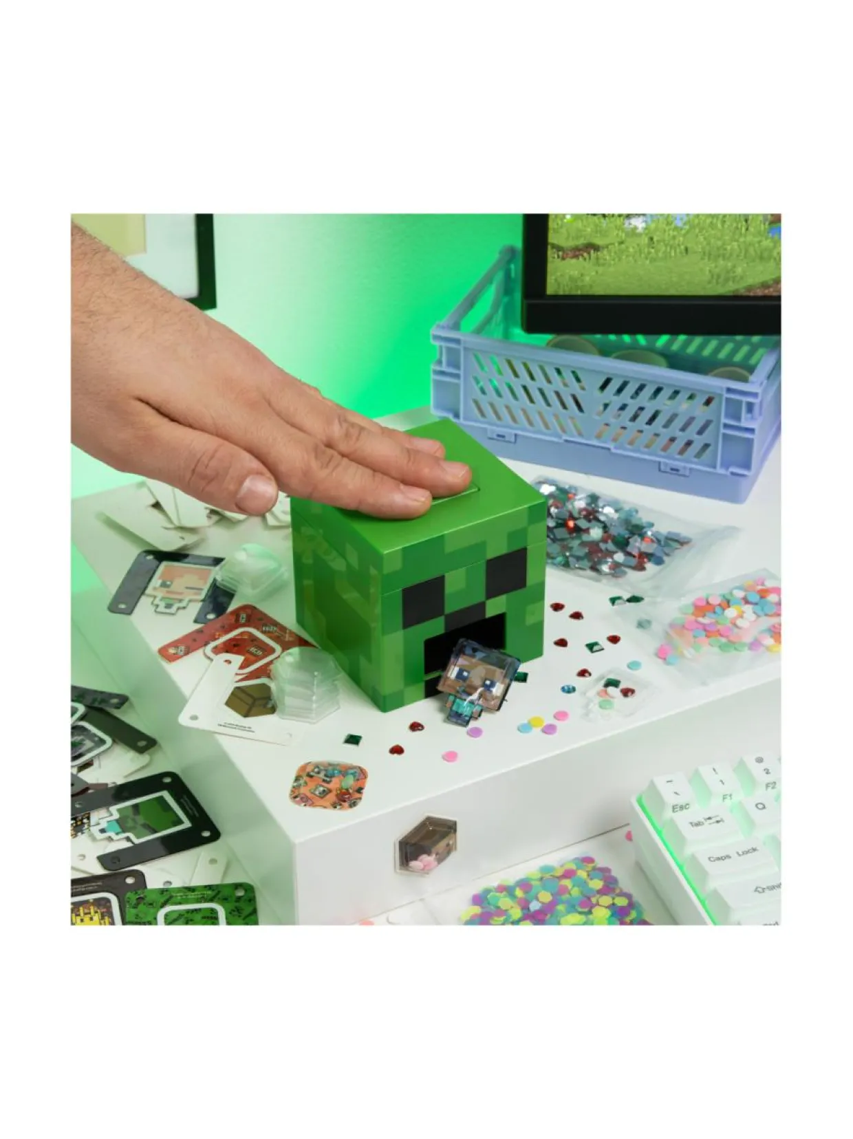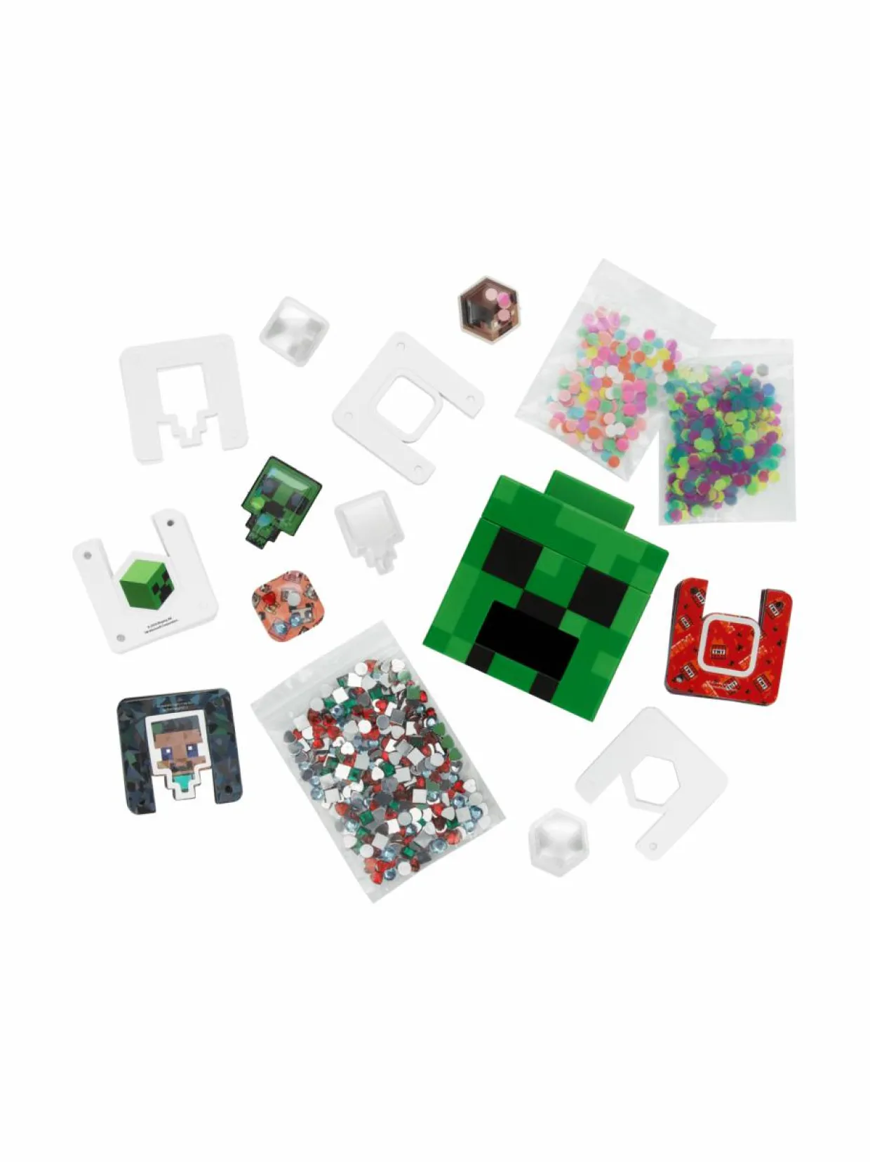 Valmistaudu tekemään itse tarroja ja nostamaan ne seuraavalle tasolle Minecraftin tee-se-itse 3D-tarrojen valmistussetin avulla. Lataa sekoittaja, paina ja liimaa valmistuneita mahtavia Minecraft-tarroja, jotka erottuvat edukseen missä tahansa, mihin liimaat ne. Setti sisältää kaiken tarvittavan, kuten Creeperin muotoisen tarrakoneen, tuntikausia kestävään hauskaan tekemiseen ja jopa 30 3D-tarran (mukaan lukien kaksi foliotarraa) valmistamiseen. Setti sisältää hauskoja taustoja ja jännittävän valikoiman jalokiviä ja koristeita, joten sinulla on loputtomasti mahdollisuuksia erilaisten tarrojen tekemiseen! Minecraftin tarrojen valmistussetti sopii täydellisesti askarteluun kavereiden kanssa.