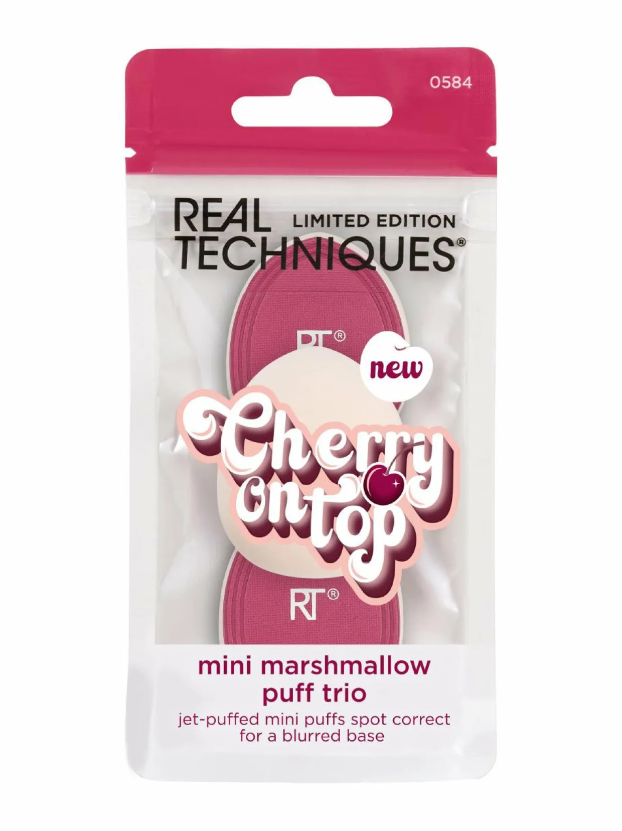 Real Techniques Mini Marshmallow Puff Trio sisältää 3 erityisen pehmeää minikokoista meikkivippaa, joiden avulla voit helposti korjata ihon pieniä virheitä ja luoda pehmeän ja tasaisen meikkipohjan. Nämä minivipat ovat täydellisiä käytettäväksi nestemäisten ja voidemaisten tuotteiden, kuten peitevoiteen ja meikkivoiteen, kanssa. Minikokonsa ja kimmoisuutensa ansiosta ne peittävät näppylät, tummat silmänaluset ja muut kohdat, jotka kaipaavat lisäpeittoa, tehden pohjasta virheettömän. Näissä superpehmeissä meikkivipoissa on myös sorminauha, joka varmistaa tarkan otteen. Vipat toimivat parhaiten kuivina käytettäessä. Kokeile myös muita tuotteita rajoitetun erän Cherry On Top -kokoelmasta – sillä jokainen meikkilook ansaitsee kruununsa. Eläinkokeeton ja vegaaninen.
